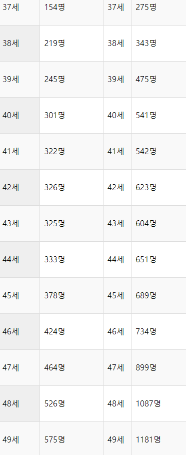 87세까지 꾸준히 사망자 인구가 증가하다가 그 이후부터는 감소추세임