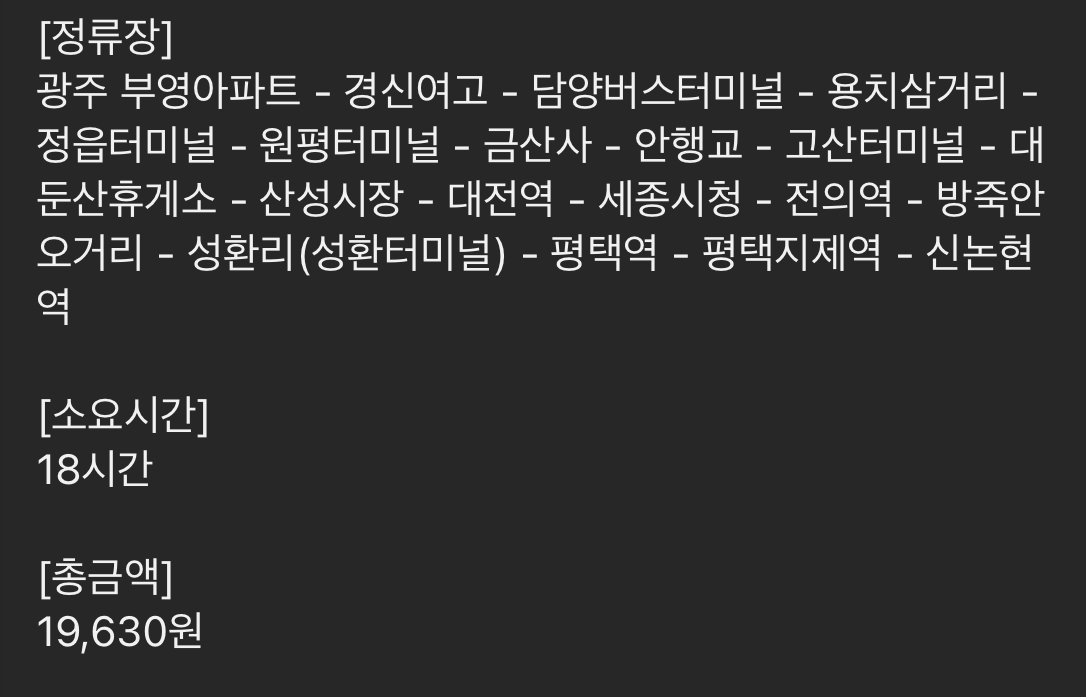 * 거쳐온 정류장, 시간, 금액 ㄷㄷ