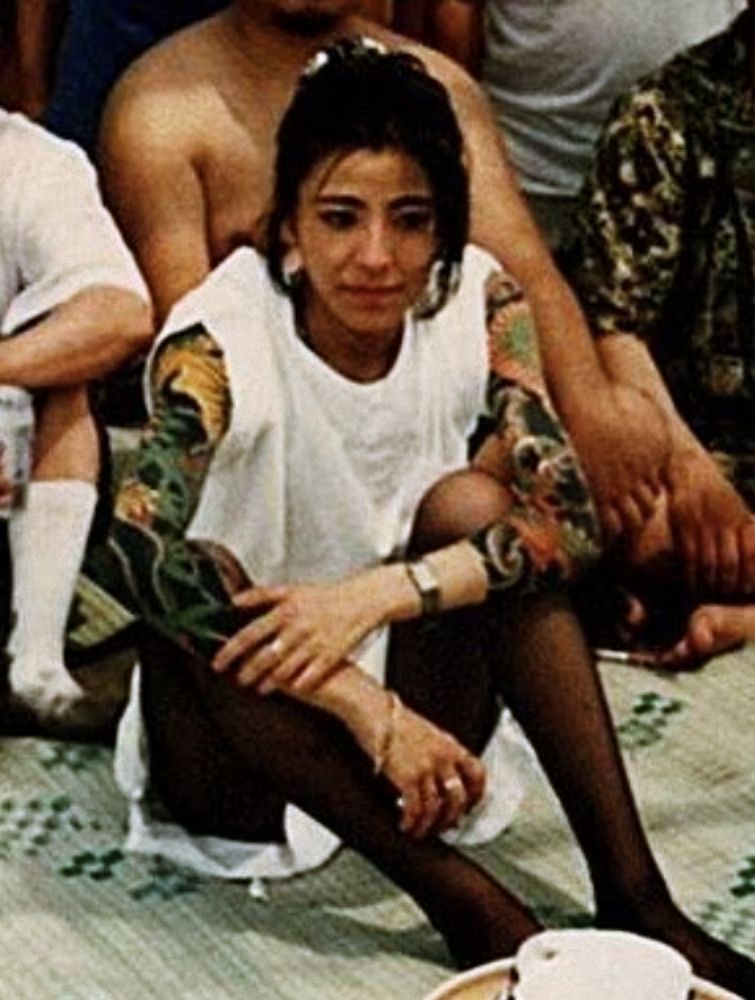 18세 무렵 문신사 선생한테 등에 새겨달라고 했다. 그런데 완성 전에 그 선생이 각성제 중독으로 사망해서 색이 채워지지 않았다. 소년원에 들어갔을 때 문신이 도움이 됐다. 등에 화각(주: 일본 전통 그림 바탕의 문신)을 짊어진 여자 따위는 없으니 아무도 거역해 오지 않았다.