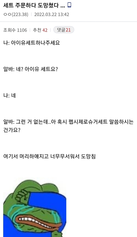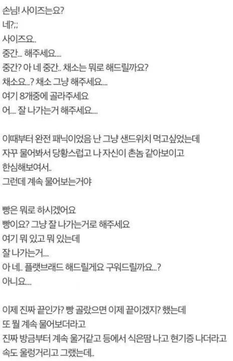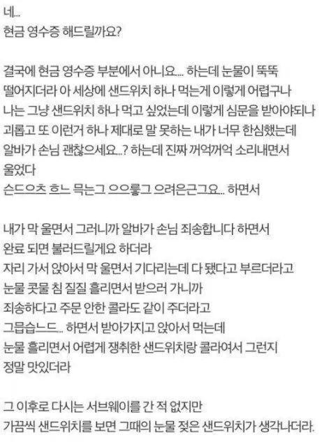 서브웨이가서 울었다는 썰