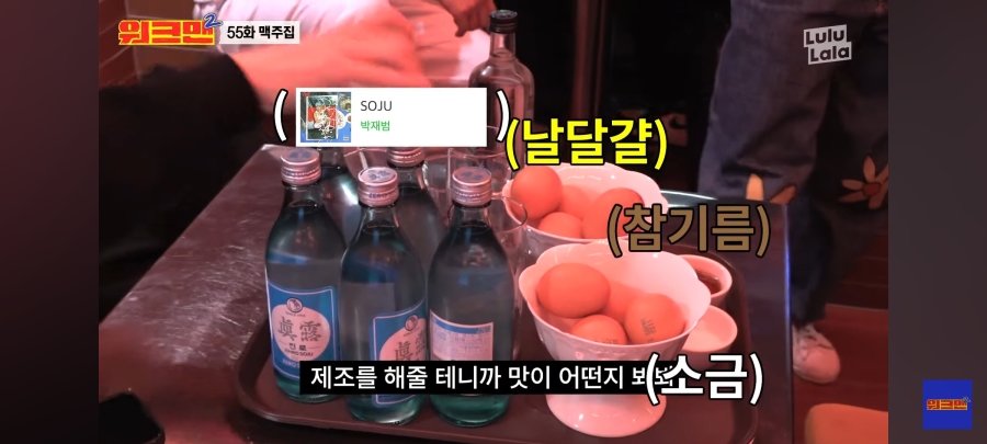 소주 반병+날계란+참기름+소금
