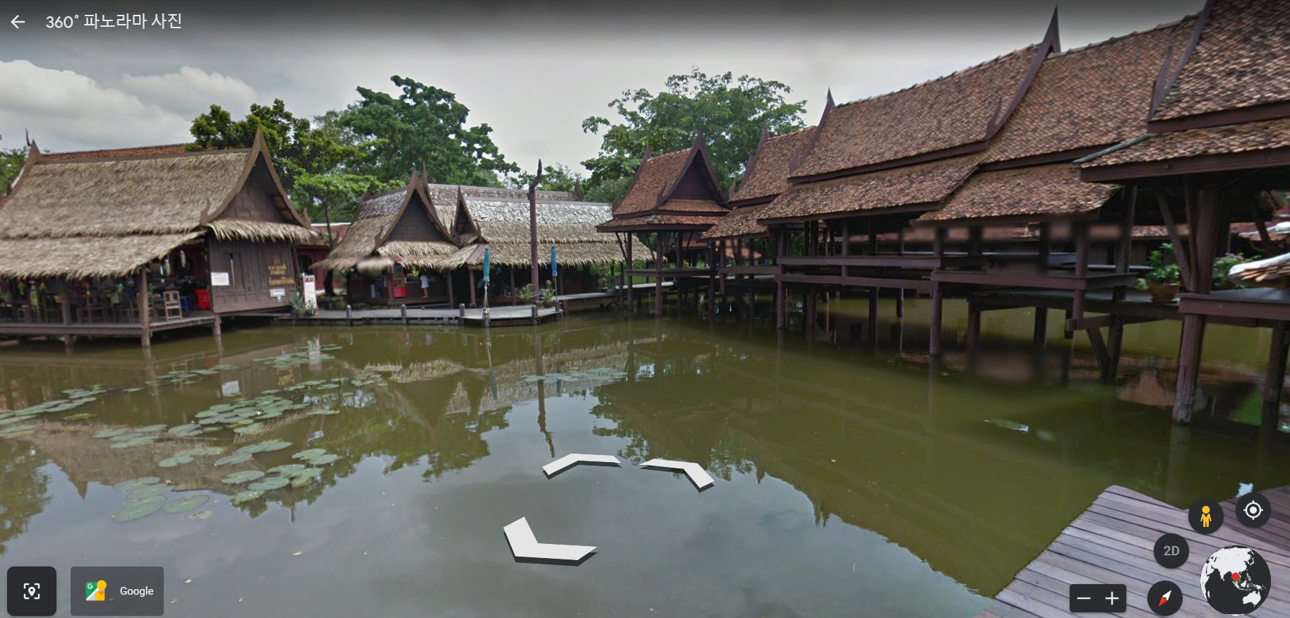 태국의 수상가옥인가 봐 사람이 사는 곳은 아니고 민속촌처럼 재연해 놓은 것 같아(아닐 수도..)