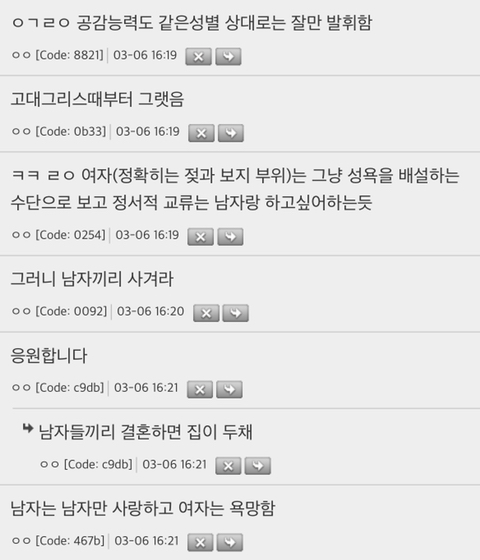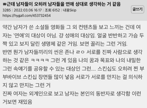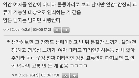 보통 여자 > 남자, 남자 > 남자는 사랑하는 대상으로 보는데