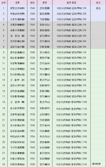 이순신 장군과 함께 1576년에 식년시에 합격한 인원들 중 다른 인물은 잘 모르겠군요...