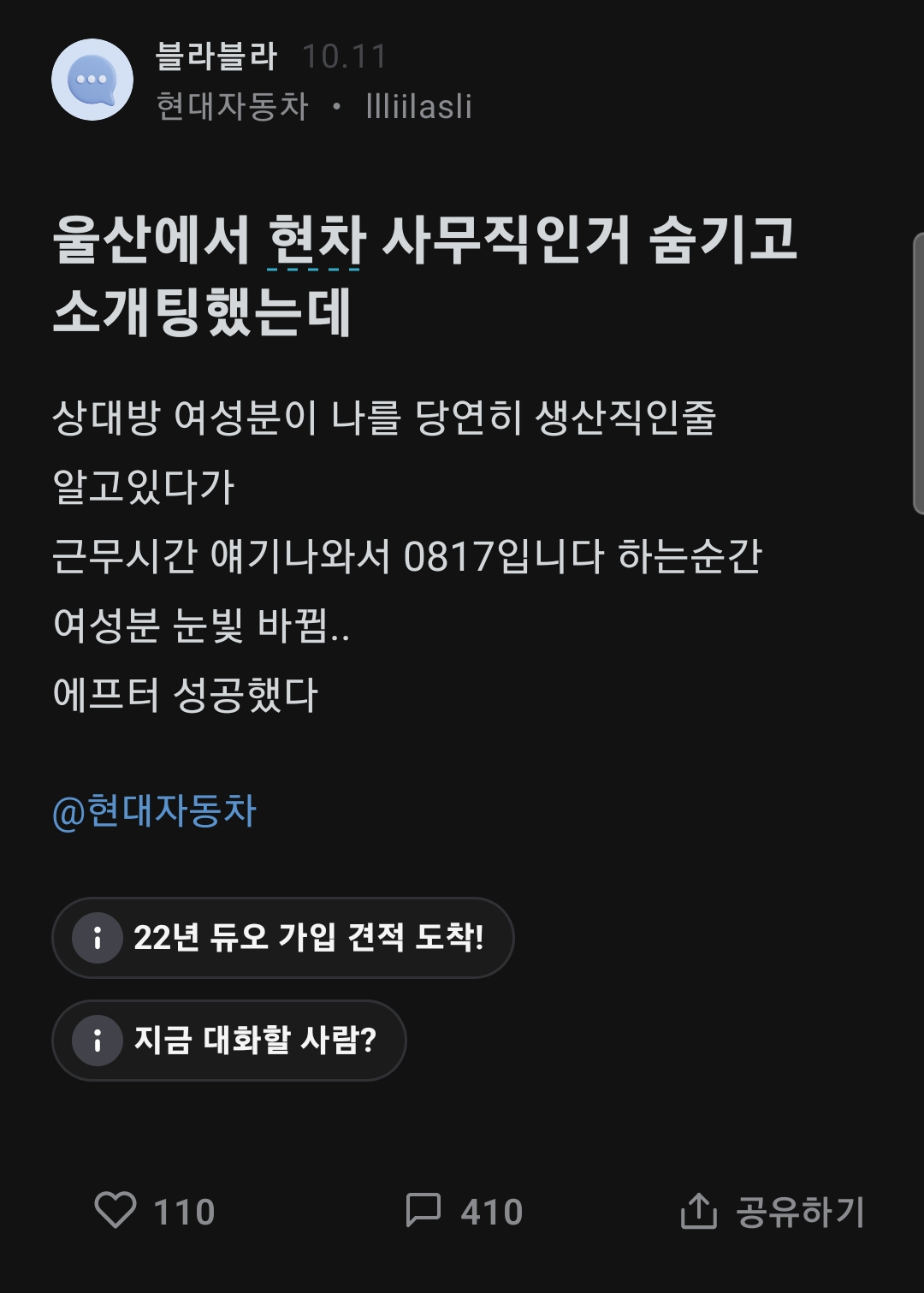 세상 사람들 모두가 현차를 탈거라고 생각하다니...
