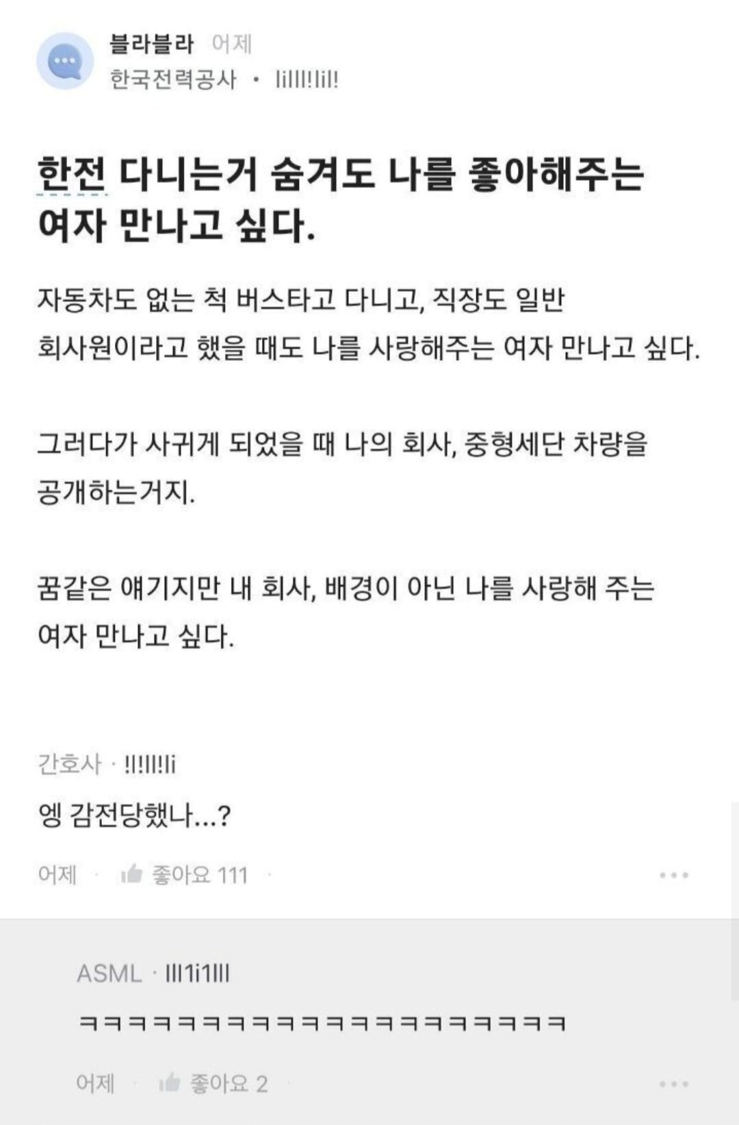 아 진심 존나웃겨 한전은 그냥 자기들 저렇게 사는걸 즐기는거 아니야? 광대가 삶의 지향점 같은데