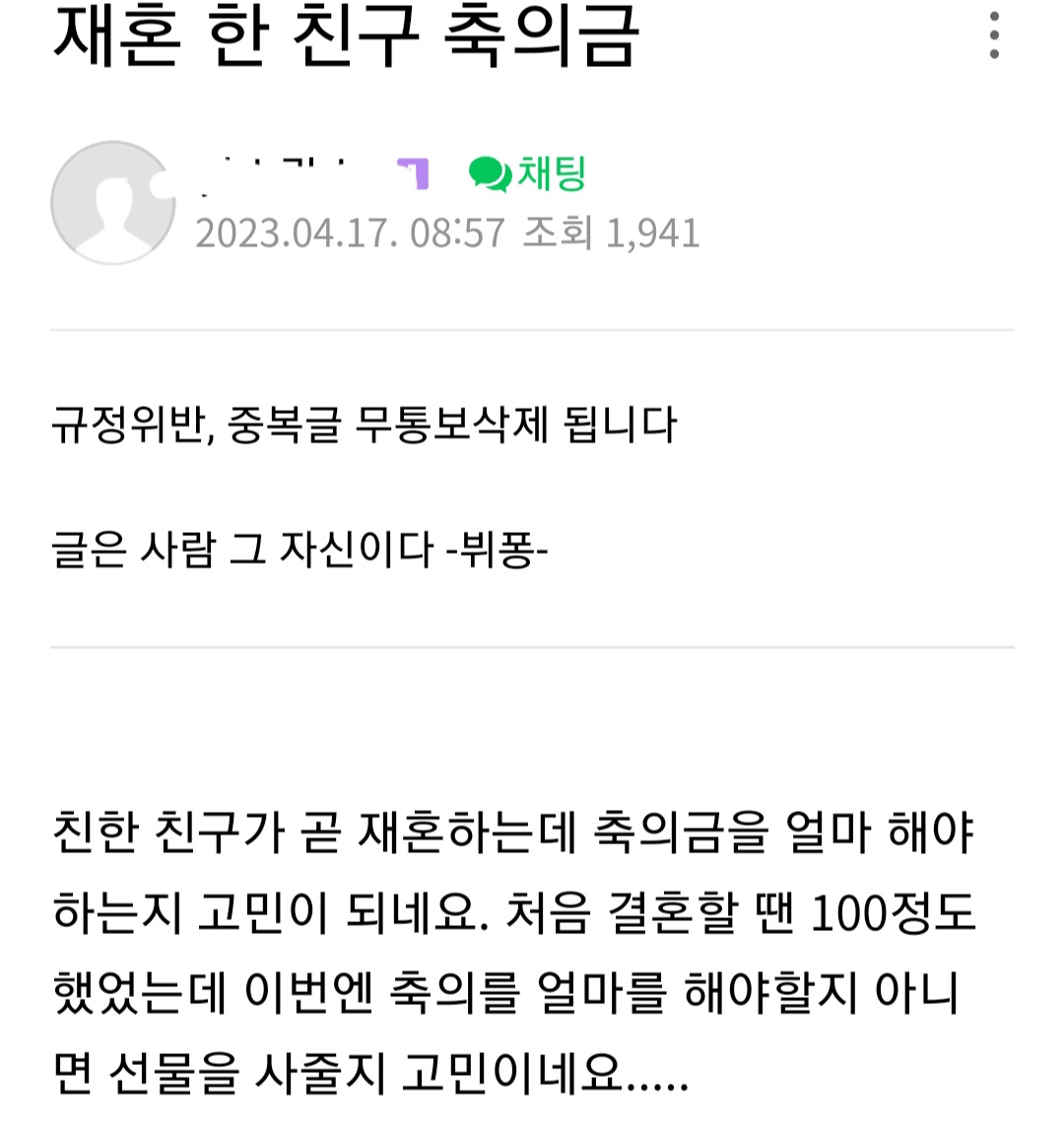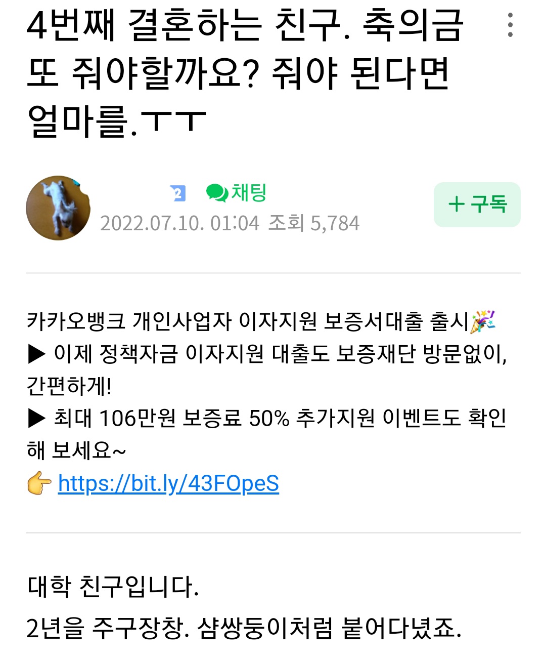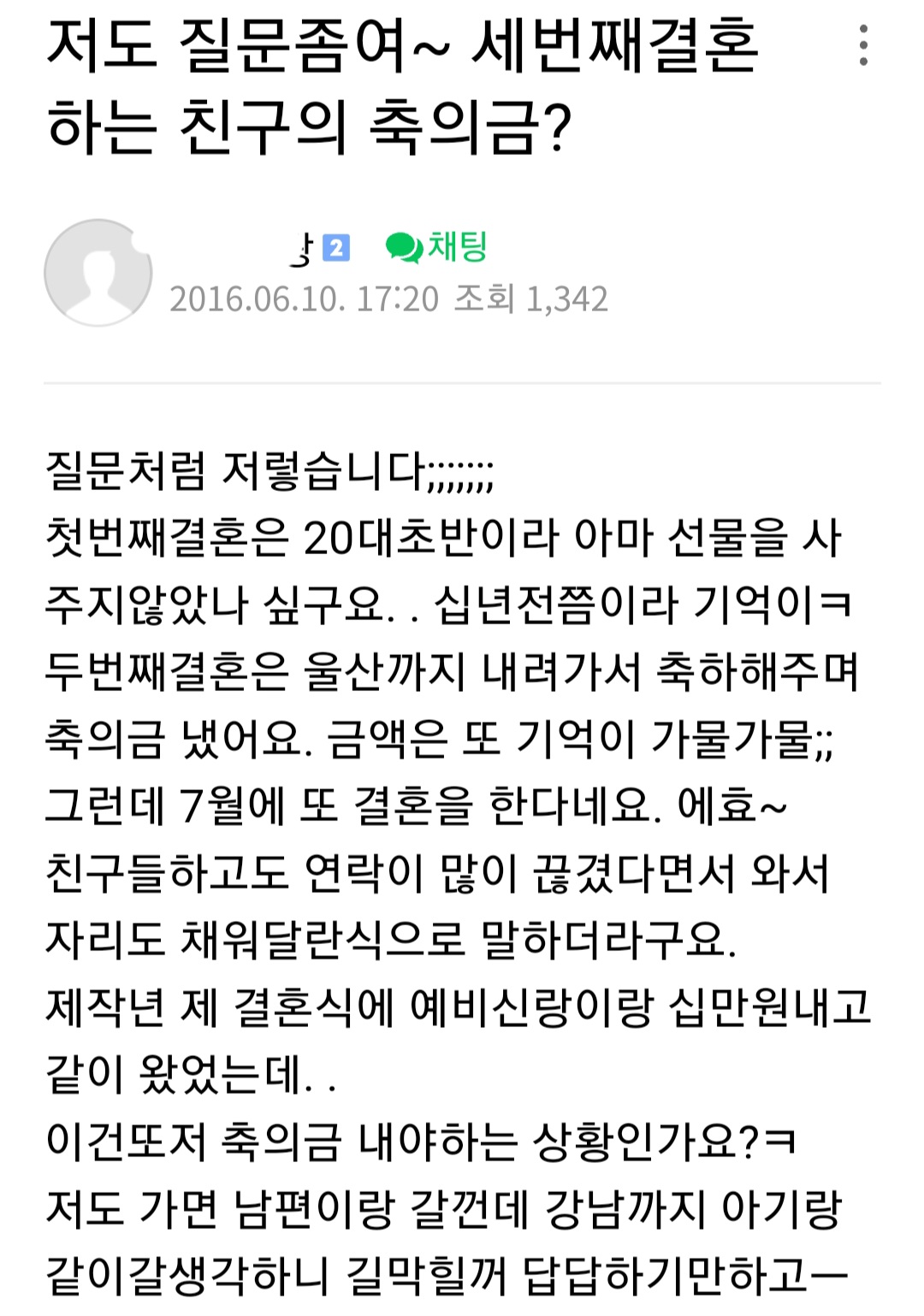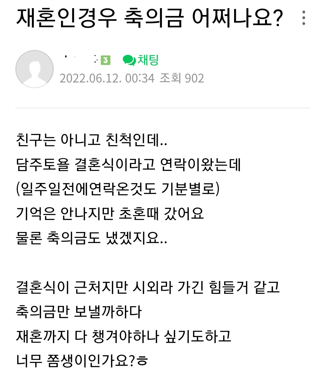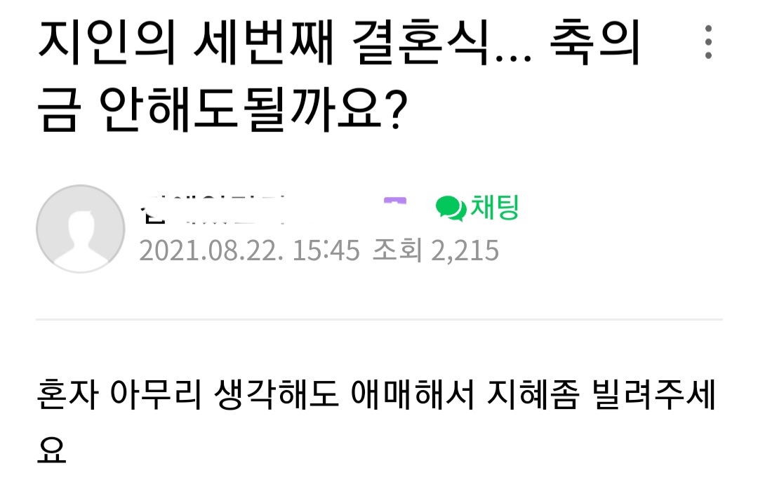 축의금 고민들 올라온다 함 ㅋㅋㅋ