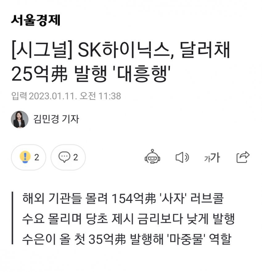 그래서 하닉이 회사채를 대규모로 발행해도 시장에서 다 사줌. 오히려 대흥행해서 조달 금리를 낮추기까지 함. 하닉 최대 재무 리스크가 회사채에 대한 시장 반응이었는데 작년 말과 올해 채권 시장 반응을 보니 걱정할 건 별로 없어 보임. 올해 만기 돌아오는 회사채를 계속 만기 연장하고, 또 7조 원 이상의 회사채를 추가 발행하는 데는 별 문제가 없어 보임. 채권쟁이들이 얼마나 똑똑한데? 하닉 망한다고 생각하면 저렇게 회사채를 죄다 싹쓸이 하겠음?