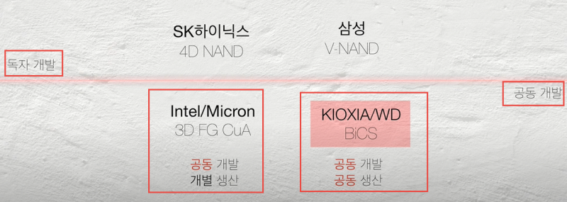 이 말은 100% 옳다. 그런 관점에서 키옥시아/WDC의 미래를 극도로 어둡게 보는 게 기술 경쟁력, 자본력 모두 D램 3사(삼성전자 - SK하이닉스 - 마이크론)에 뒤쳐지고 있기 때문. 시장에서 퇴출당하거나 남들한테 인수합병 당해서 낸드 산업 통합의 대상이 될 가능성이 매우 높다는 의미. 구체적으로 살펴보자