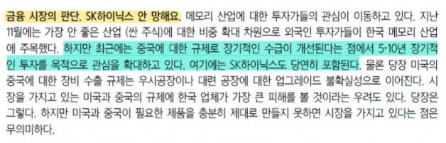 대신 증권의 메모리 반도체 기업들 분석 리포트