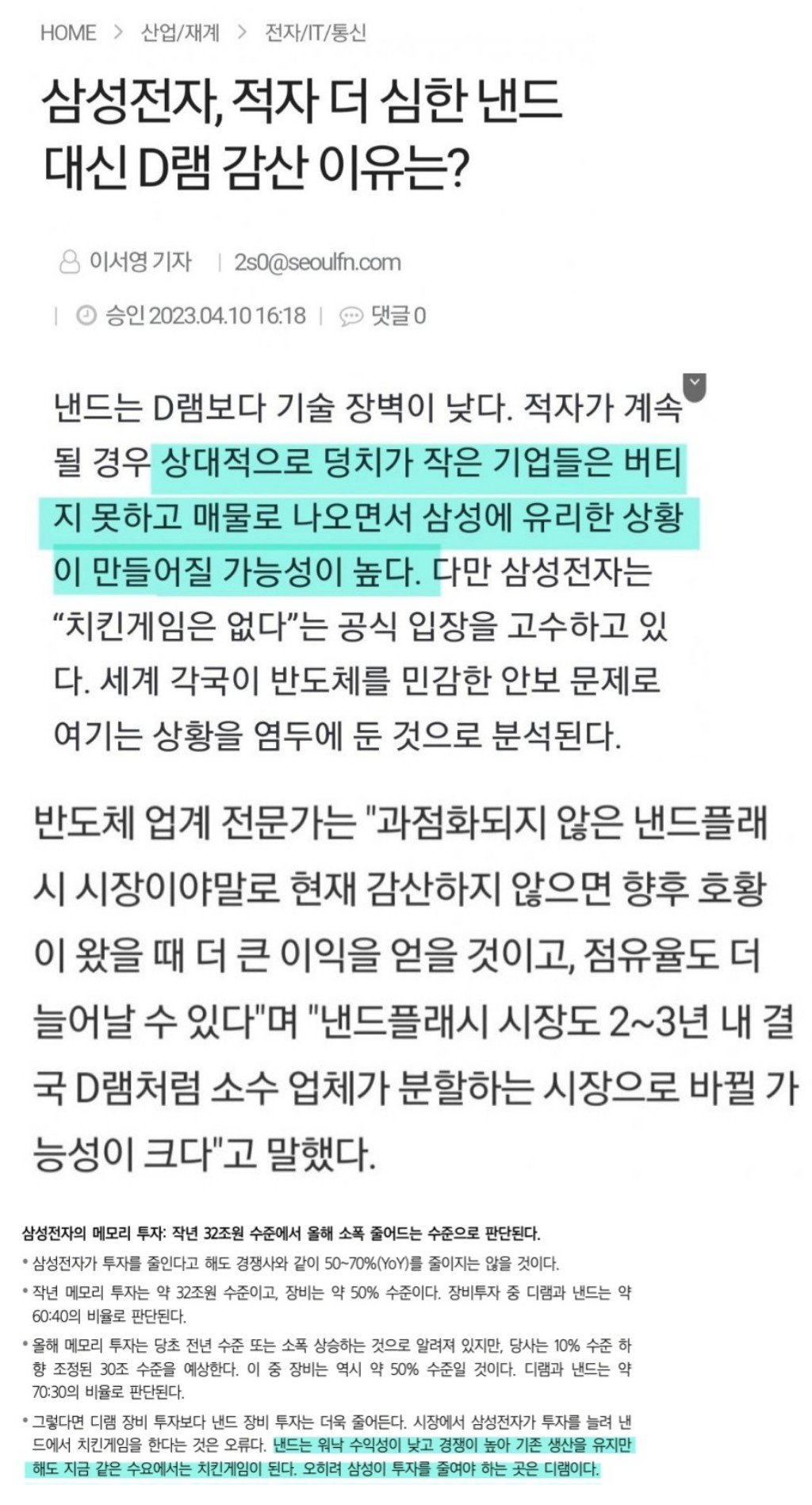 PS. 아 참고로 낸드는 상황이 정 반대임. 삼전의 감산은 거의 없을 것임.