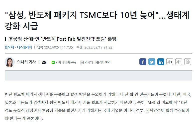 5. 당시 이와같은 TSMC-일본간 협력은 국내 전문가들도 염려했었음. 실제로 삼성전자와 TSMC간 가장 기술격차가 나는 분야를 패키징이라고 뽑는 사람들도 적지 않음
