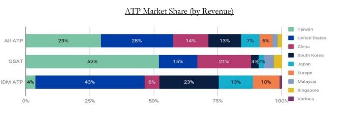 엠코를 비롯한 일부 미국 OSAT 기업이 있기는 하지만, 미국에 본사를 둔 기업은 OSAT 비즈니스의 15%에 불과하며(대만이 52%로 1위, 중국이 21%로 그 뒤를 잇고 있습니다), 엠코는 미국에 본사를 두고 있지만 미국에 생산 시설을 보유하고 있지 않습니다.
