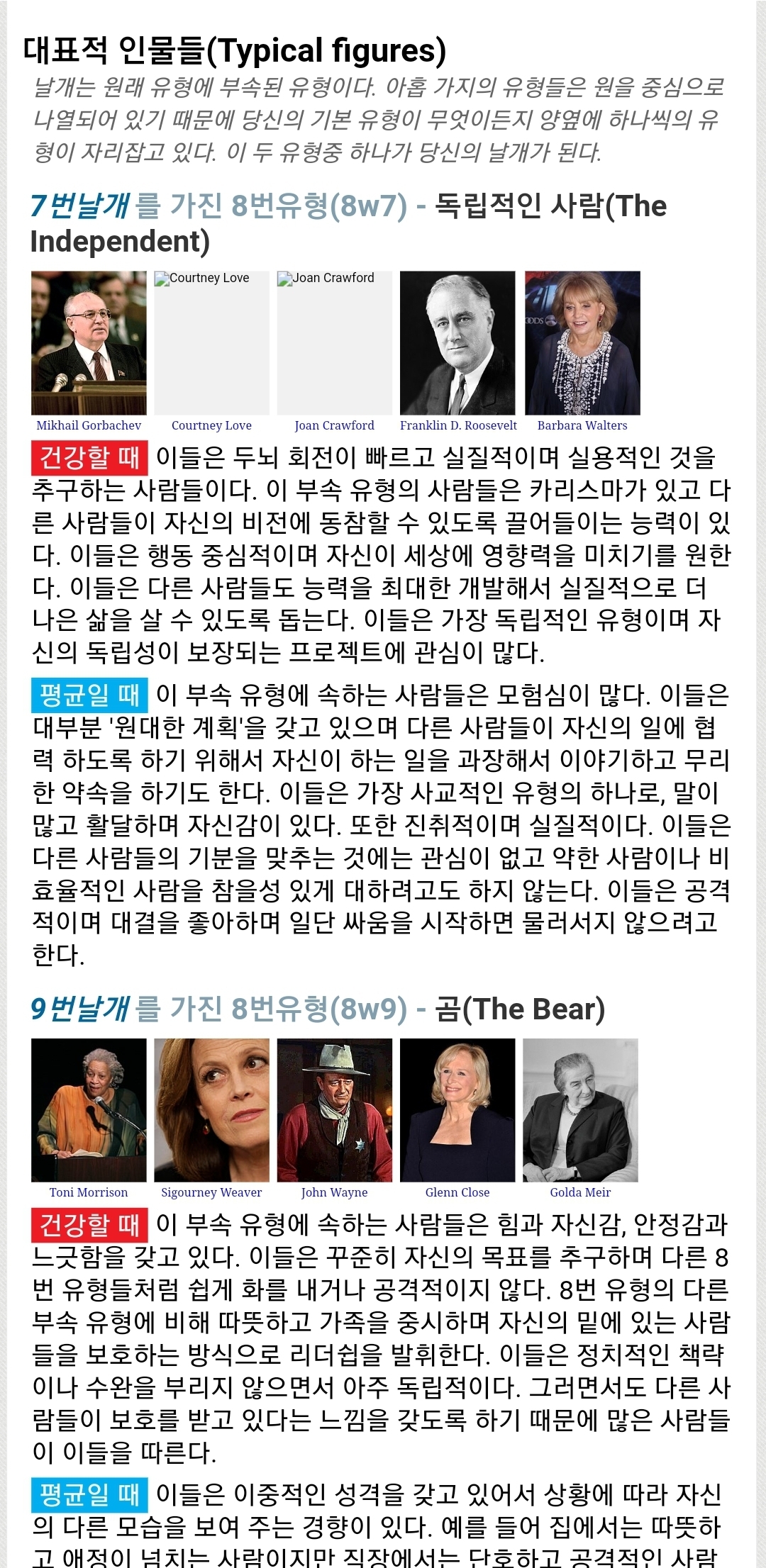 만약 Type 8이 나왔다면 전체적으로 8번 성향을 가지고 있으며 7번날개(8w7) 아니면 9번날개(8w9)를 가지고 있는거임!
