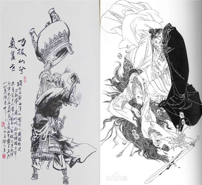 최후의 전투를 앞둔 항우는 종말을 예감하고 우희를 불러 눈물 흘리며 술을 마시는데, 패왕별희는 이 장면에서 따온 작품임.