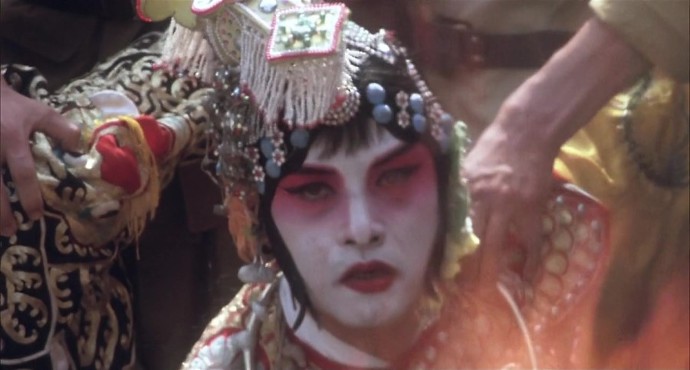 샬로는 취조 과정에서 벽돌을 머리로 깨라는 요구를 받는데, 더는 벽돌을 깨지 못하고 피만 남. 패왕별희라는 작품과 경극의 생명이 다해가듯 (우희가 부른 답가의 구절처럼) 의기가 다 해버린 패왕의 모습임.