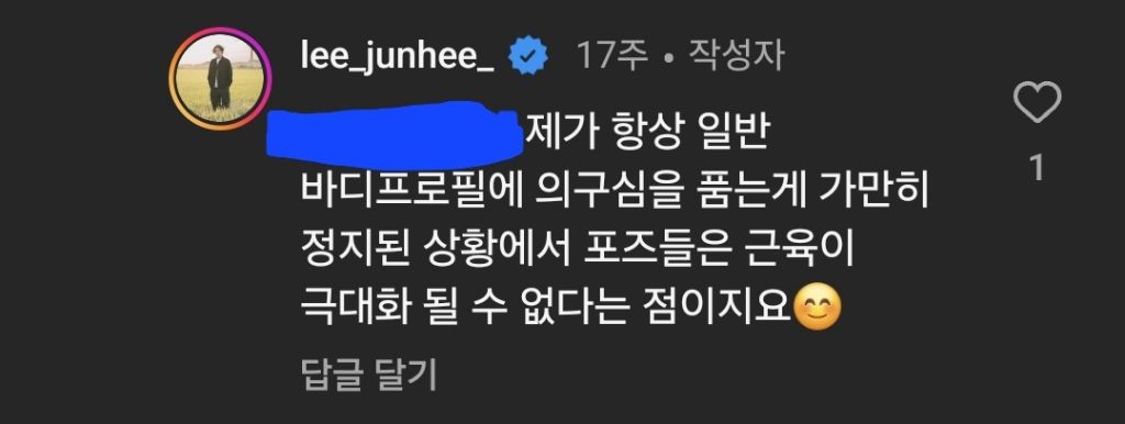 생각해보면 실제 운동하고있을때 찍는게 맞는것같기도. 뭐 스타일이 다른거겠지만