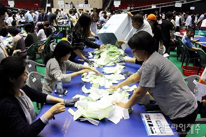 전자개표기는 중간에 표가 끼거나 하면 컴퓨터로 눌러줘야할 것들도 있고 단순 표 분류보다는 좀 복잡해서 교육 받을 게 좀 더 많았다.