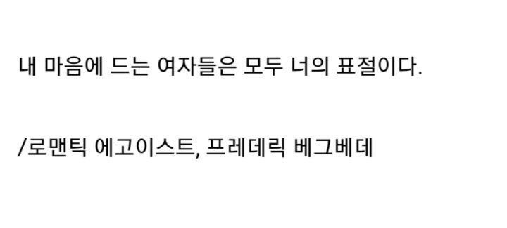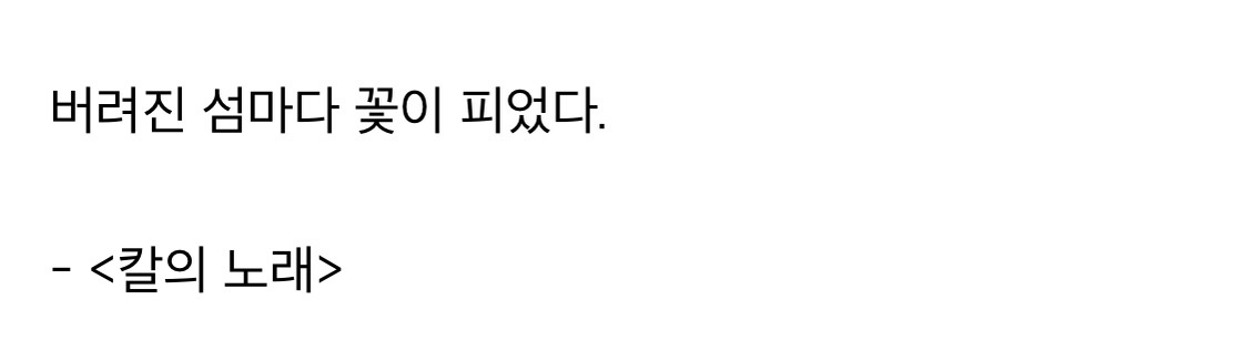 [스크랩] [흥미돋]내 기억에서 영원히 잊혀지지 않을 문장이 있다면? 작성자밤양굉|작성시간24.04.12|조회수1,866 목록 댓글 40 글자크기 작게가 글자크기 크게가 출처 : 여성시대 개빡센하루ㅅ1작여시들 마음속에 가장 오래 남을 문장은 뭐야?시도 좋고, 인용구도 좋고, 대사도 좋고, 짧은 글귀도 좋아마음을 울리게 했던 문장이 있으면 소개해줘! 다음검색 스크랩 원문 : *여성시대* 차분한 20대들의 알흠다운 공간 현재 게시글 추가 기능 열기 북마크 공유하기 신고 센터로 신고 댓글 댓글 40 댓글쓰기 답글쓰기 댓글 리스트 작성자윤7ㅖ샹 | 작성시간 24.04.12 사랑해 처음부터 그랬고 앞으로도 그래 작성자내도도독도 | 작성시간 24.04.12 일부러 몇 발자국 물러나 내가 없이 혼자 걷는 널 바라본다 작성자골라주라주 | 작성시간 24.04.12 이 또한 지나가리라 작성자가오쟈바 | 작성시간 24.04.13 나는 나를 용서해 작성자지독한홍설 | 작성시간 24.04.13 비 쏟아지는 막사였다. 댓글 전체보기
