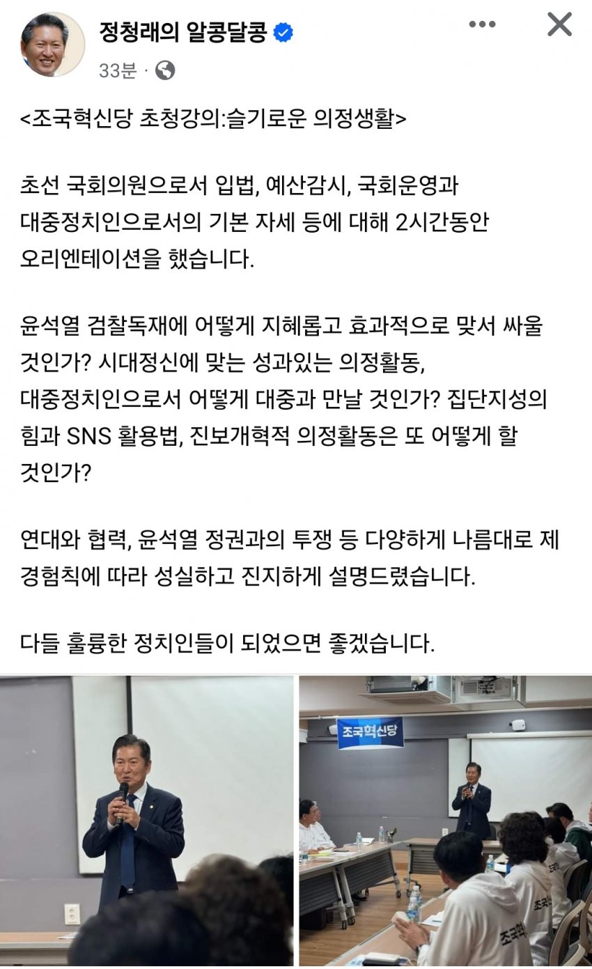 [여시뉴스데스크]발언하는 정청래 최고위원 (오늘자 청래) 작성자이재구|작성시간24.04.15|조회수7,147 목록 댓글 37 글자크기 작게가 글자크기 크게가 출처: https://naver.me/xLJB80Xe발언하는 정청래 최고위원정청래 더불어민주당 최고위원이 15일 오전 서울 여의도 국회에서 열린 최고위원회의에서 발언하고 있다. 2024.04.15. bjko@newsis.com 공감언론 뉴시스가 독자 여러분의 소중한 제보를 기다립니다. 뉴n.news.naver.com 다음검색 현재 게시글 추가 기능 열기 북마크 공유하기 신고 센터로 신고 댓글 댓글 37 댓글쓰기 답글쓰기 댓글 리스트 작성자모든고민해결완료 | 작성시간 24.04.16 ㅋㅋㅋㅋㅋㅋㅋㅋㅋㅋㅋ엌ㅋㅋ 작성자버쨔 | 작성시간 24.04.16 짝짝짝 칭찬해👏👏👏 작성자조쉬 코헨 | 작성시간 24.04.16 연대하는 모습 좋다 작성자Kobbie Mainoo | 작성시간 24.04.16 보기좋다 ㅋㅋㅋㅋㅋㅋㅋㅋㅋ 작성자덤덤이덤덤 | 작성시간 24.04.17 당대포 보기 좋네 댓글 전체보기