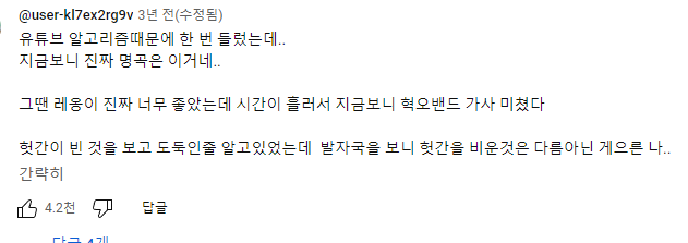혁오 원곡 버전 영상도 다른 느낌으로 좋아서 들고 옴