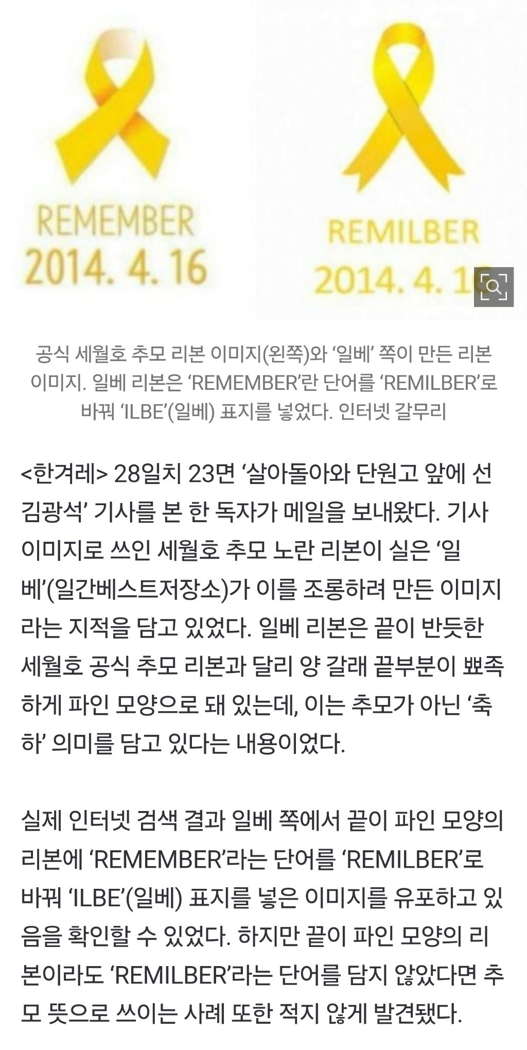 [여시뉴스데스크]세월호 리본 ‘일베 주의보’…뜻의 차이 유념하겠습니다 작성자고양이집사새끼|작성시간24.04.16|조회수6,667 목록 댓글 21 글자크기 작게가 글자크기 크게가 출처: https://n.news.naver.com/entertain/article/028/0002347839세월호 리본 ‘일베 주의보’…뜻의 차이 유념하겠습니다[한겨레] ‘일베’, 모양과 단어 바꿔 조롱 뜻 담아 유포 “공식 리본과 달리 양끝 뾰족한 모양 리본도추모 아닌 ‘축하’ 뜻 담겨 사용에 주의 필요”공식 세월호 추모 리본 이미지(왼쪽)와 ‘n.news.naver.com2016년도 기사임전문 출처 다음검색 현재 게시글 추가 기능 열기 북마크 공유하기 신고 센터로 신고 댓글 댓글 21 댓글쓰기 답글쓰기 댓글 리스트 작성자내딸김사월 | 작성시간 24.04.16 재들은 대체 왜 저러는걸까 진짜 머릿속이 궁금하다 작성자뽀쏨이 | 작성시간 24.04.16 별 지랄을 다 하네 진짜… 작성자소행성L013 | 작성시간 24.04.16 와..진짜 쌀벌레 보는 느낌이야.. 징그럽고 기분나쁨.. 작성자후린세스 | 작성시간 24.04.16 좆찐따같다 작성자링링에이드 | 작성시간 24.04.16 ㅈㄹ을 하네 진짜.. 댓글 전체보기
