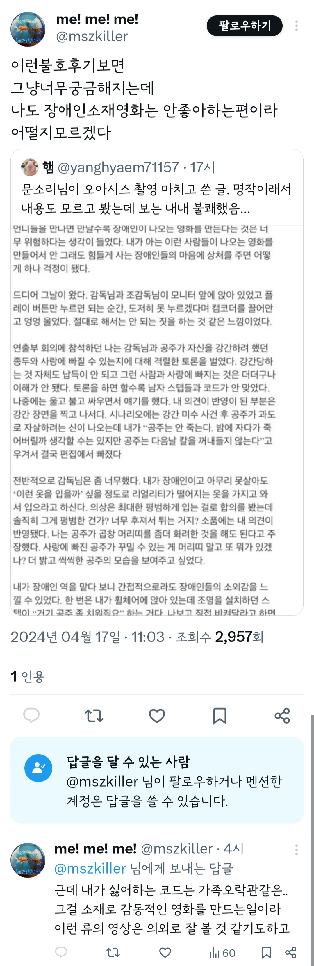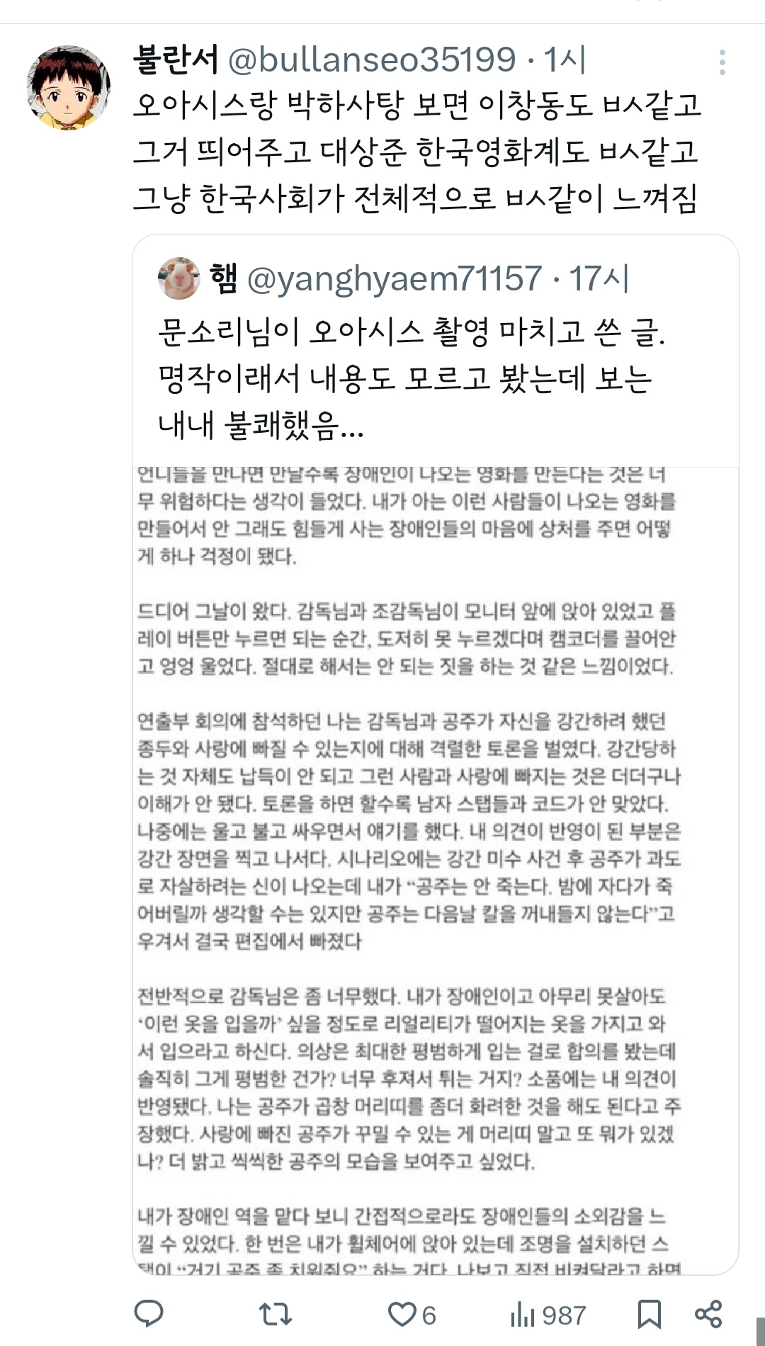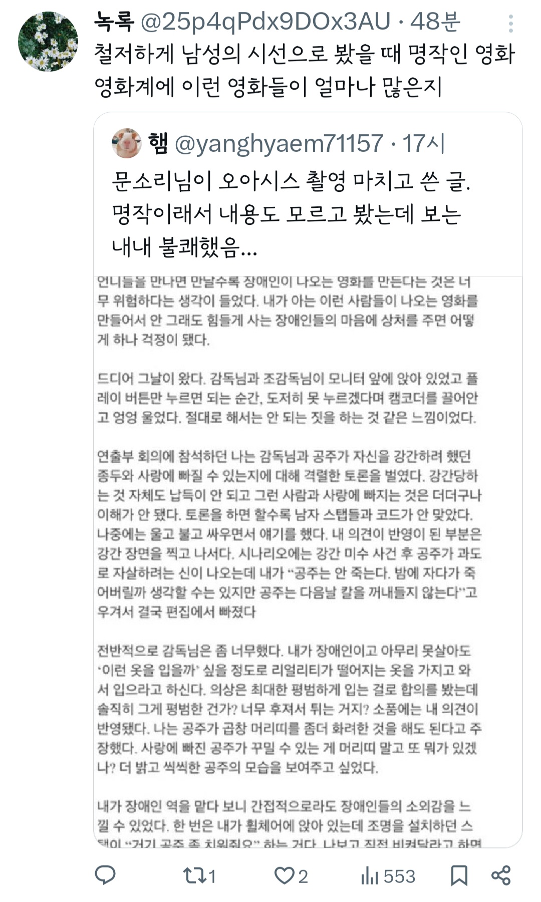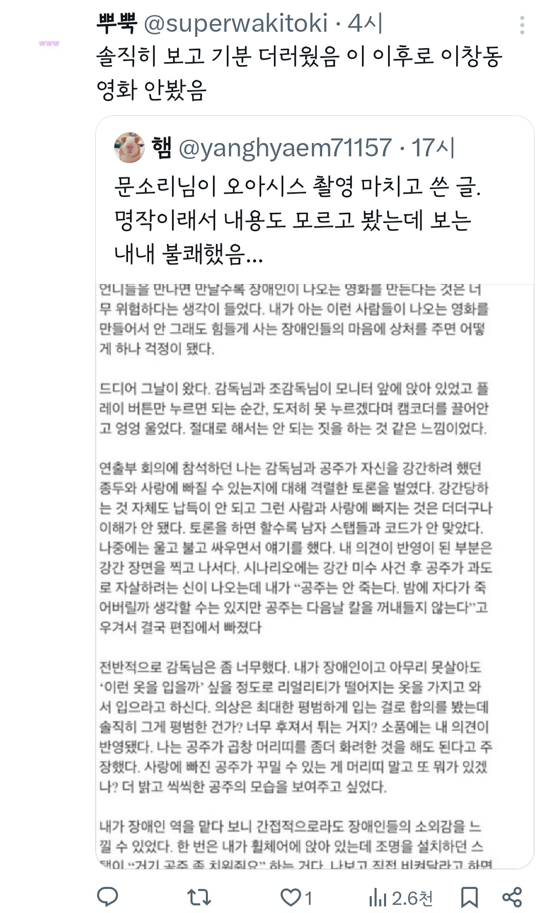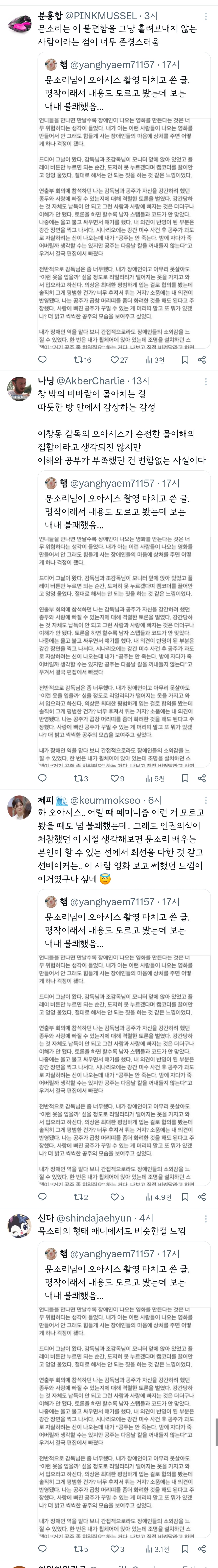 작성자으갸으갸갸으갸 작성시간 24.04.17 나는 이창동감독 이 작품때문에.. 다른 작품을 못보겟더라…