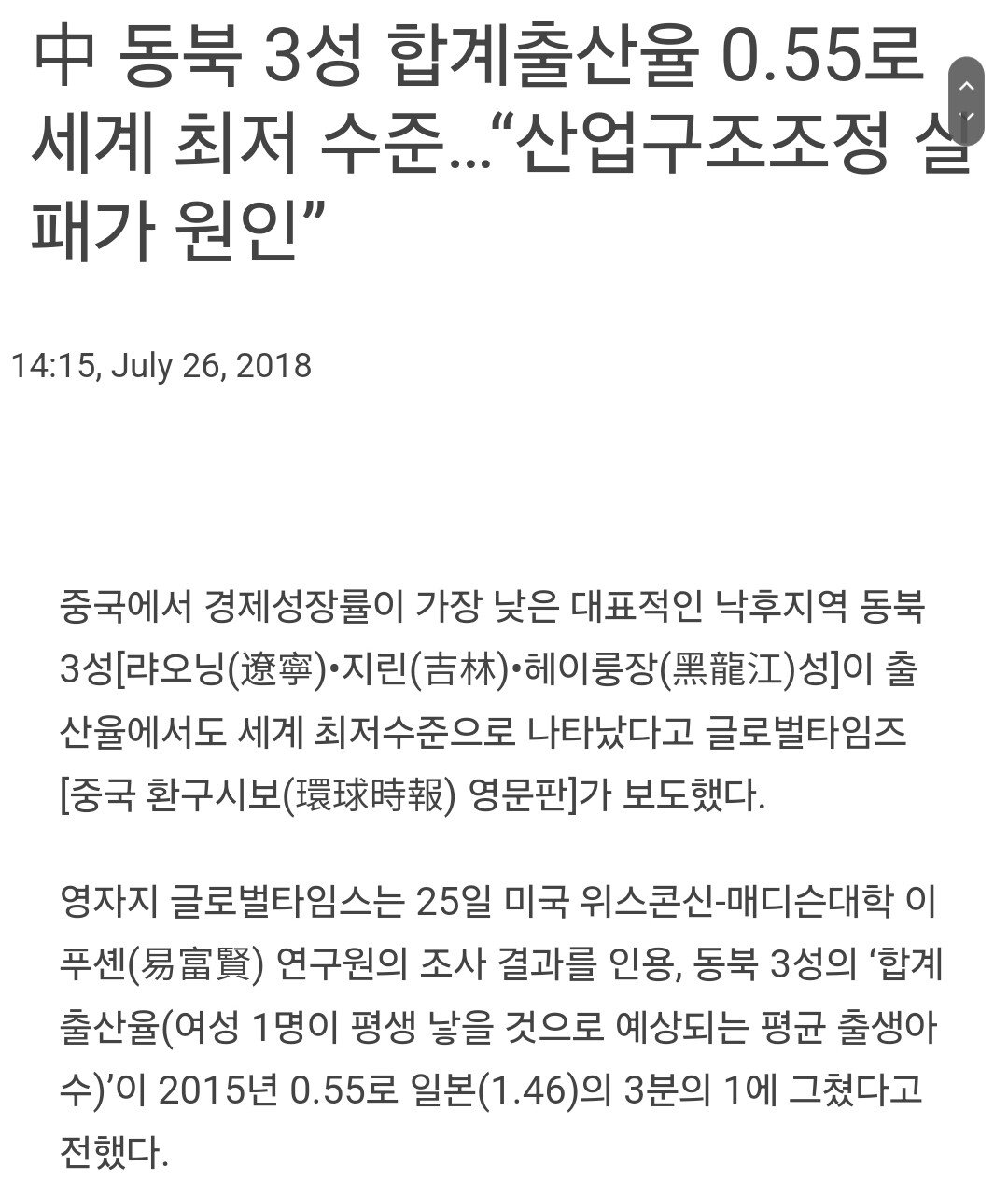 중국이 중진국 함정 얘기 나오는 이유가 최저임금 평균 월급 27~40만원대인데 3년내 성장율이 3% 대 진입에 노인 올해 3억 그리고 2032년에 4억명 찍고 중국 대도시 및 동북 3성 출산율은 무려 한국 출산율 1.2 아직 유지하던 2015년에 0.5~0.6 찍고, 10년 가까이 해결도 못하고 있는 상황인것 때문.