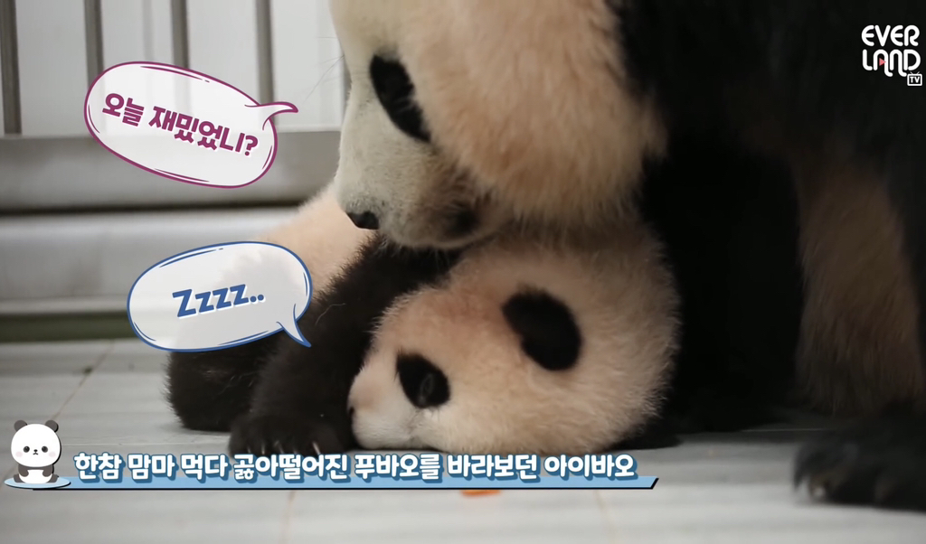 육아에 시달리느라 지친 아이바오를 위해 정기적으로 육퇴타임을 만들어준 사육사덜