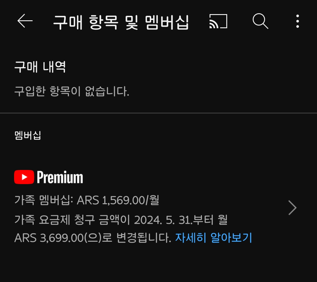 [흥미돋]아르헨티나 유튜브 프리미엄 금액인상 예정 작성자(본인 닉네임),|작성시간24.04.19|조회수22,736 목록 댓글 141 글자크기 작게가 글자크기 크게가 출처: 여성시대 (본인 닉네임),가좍 1,569ars -> 3,699ars개인 869 -> 1,899ars 다음검색 현재 게시글 추가 기능 열기 북마크 공유하기 신고 센터로 신고 댓글 댓글 141 댓글쓰기 답글쓰기 댓글 리스트 작성자이복희 | 작성시간 24.04.20 이사가야하나 했는데 나 우크라이나사람이네 작성자bkwkedf | 작성시간 24.04.21 터키 존나비싼거엿구나.. 가족 5천원정도내고있는디... 작성자우리언늬 | 작성시간 24.04.21 환율이 떨어져서 한화로 3300원->2998원으로 떨어진거래 작성자윌리웡캬 | 작성시간 24.04.21 이민가야겄네… 작성자비에른모스텐 | 작성시간 24.05.14 이민가야겠다.......... 하.........ㅠ 댓글 전체보기