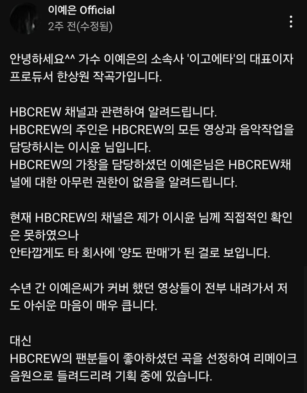 채널 관리하던사람이 영상 싹다 삭제하고