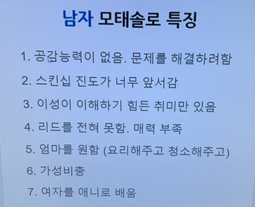 모쏠여자 완전 틀린데