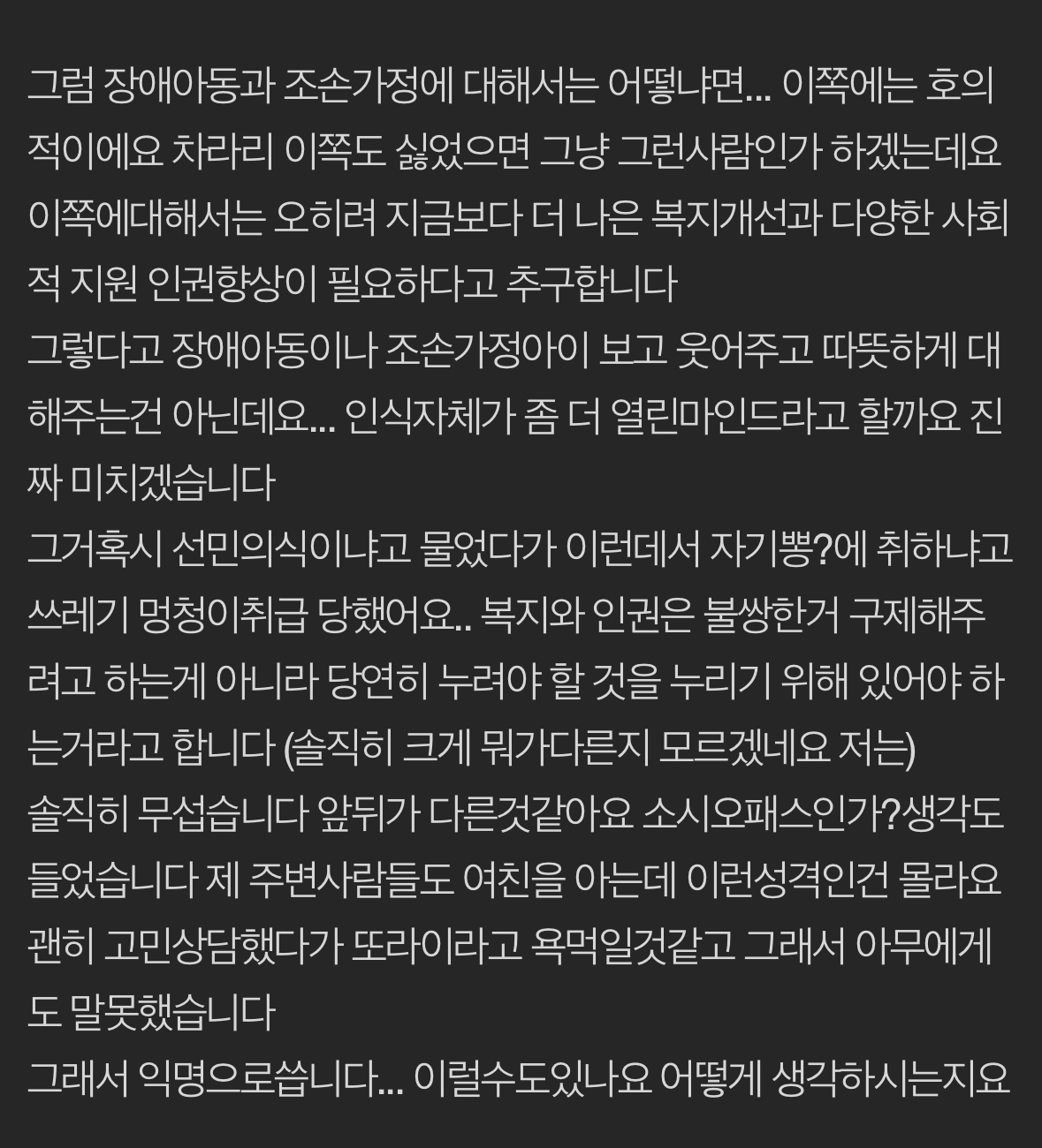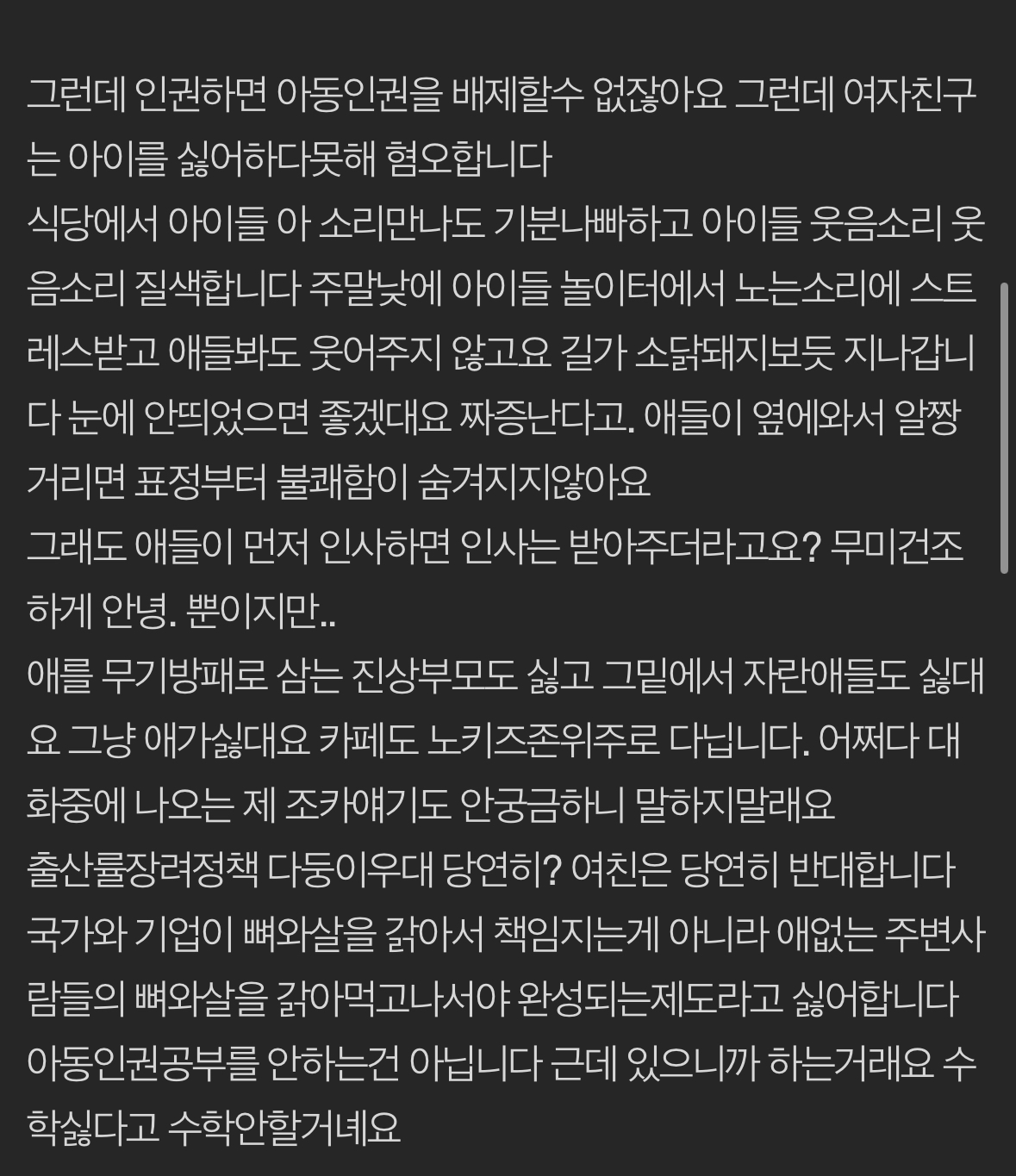 지나가는애한테 욕박은것도아니고 그냥 스스로 싫다는데 뭐가 혐오야 ㅋㅋㅋㅋㅋ뭐만하면 아동혐오래 으휴 -