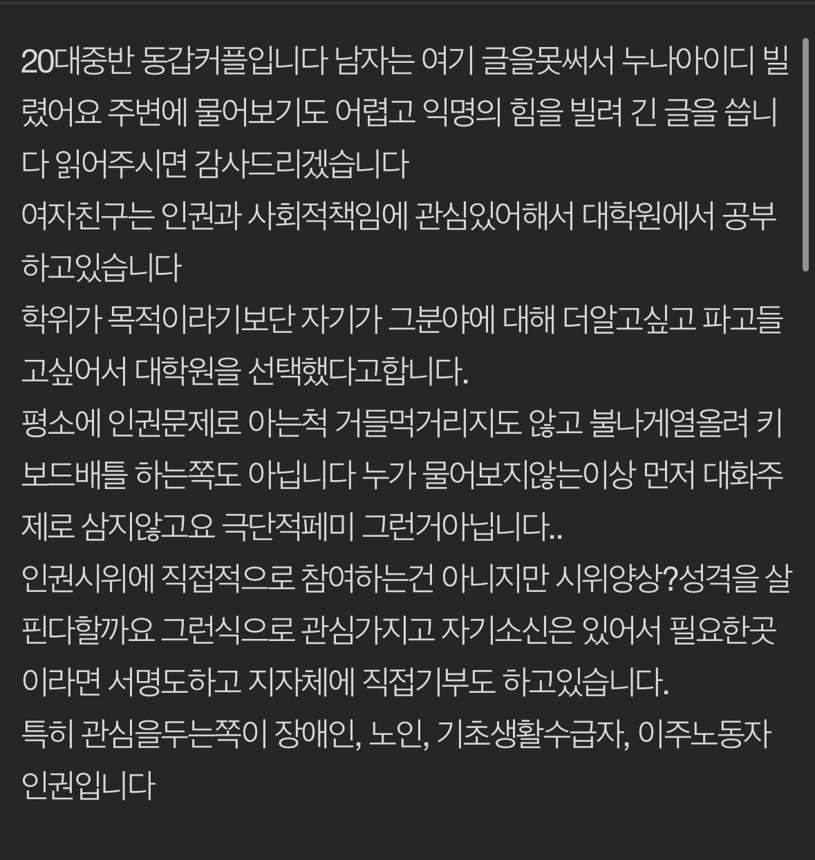 뭐 인권운동하면 만인을다 사랑하고 아끼고 이럴거라 생각하나? -