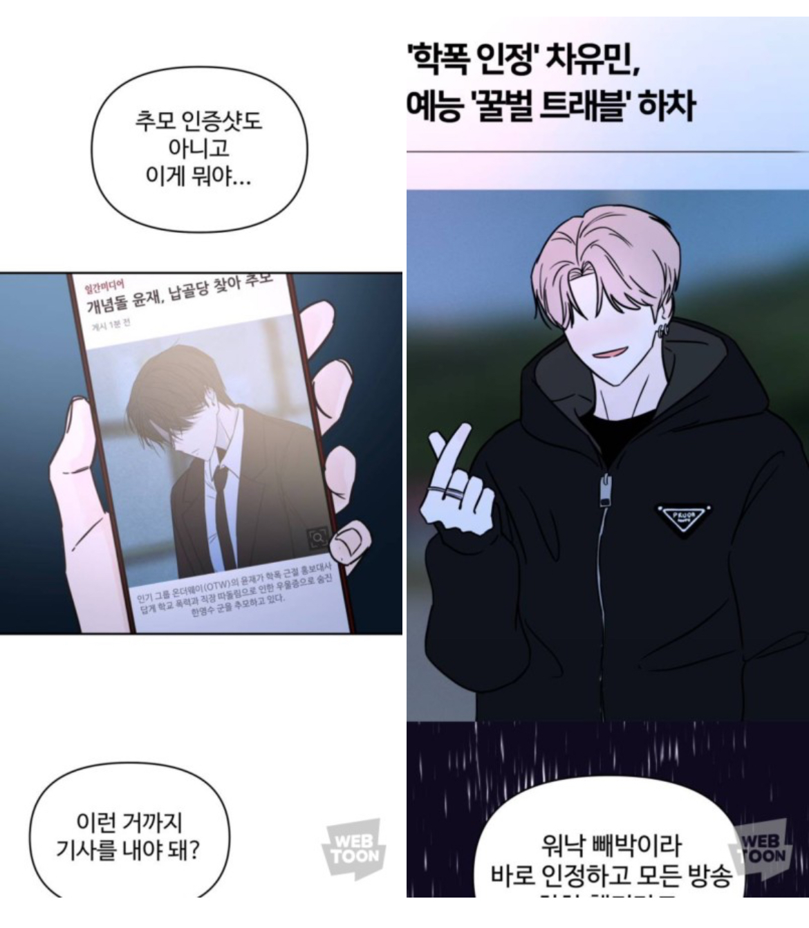 다른 그룹의 멤버가 학교폭력 가해자로 지목된다