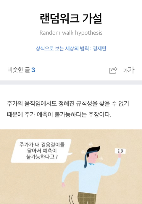 2) 랜덤워크 가설에 따르면 효율적인 시장에선 호재와 악재가 실시간에 반영되기에 주가를 예측할수 없다고 주장합니다