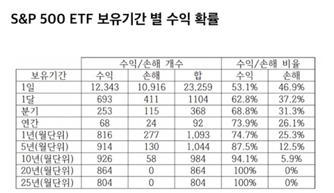장기전으로 갈수록 개인이 시장을 이기는건 거의 제로값에 도달합니다