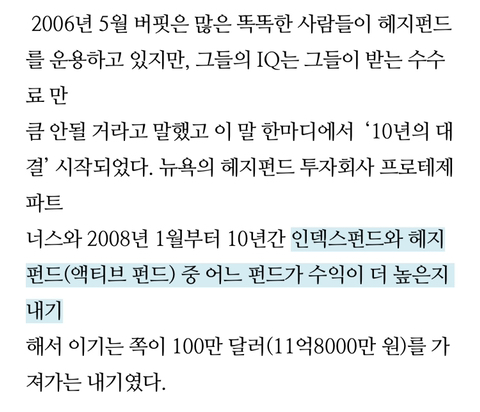 버핏의 헤지펀드매너저 IQ광역도발로 시작된 이 내기는
