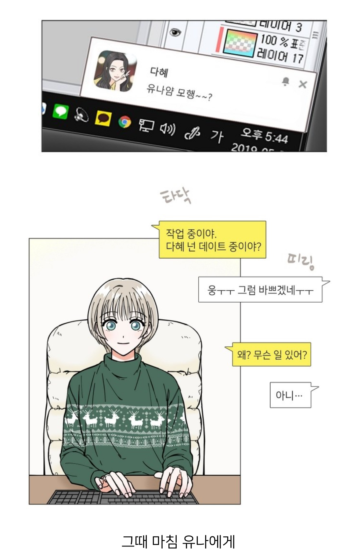 다혜의 연락이 오는데