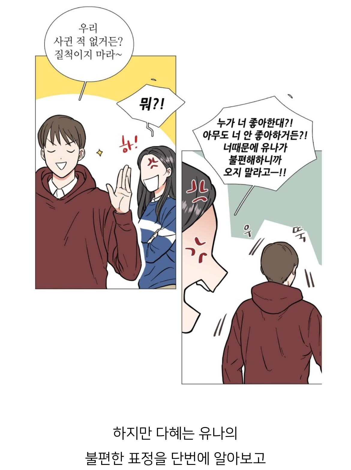 짝녀가 울먹임 + 친구라고 말함