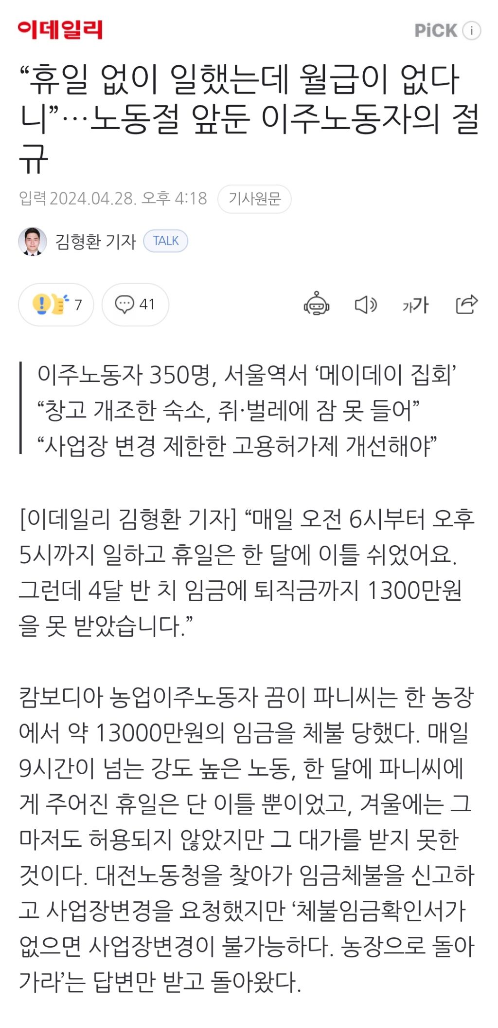 내국인들도 떼인 임금 못받는거 비일비재인데 저분들은 아예 안줘도 된다고 생각하는 인간들 수두룩일듯 ㅠㅠ 진짜 회사 자산 있는데 임금체불 걸리면 사업 못하게 하는 법 좀 만들었음 좋겠음... -