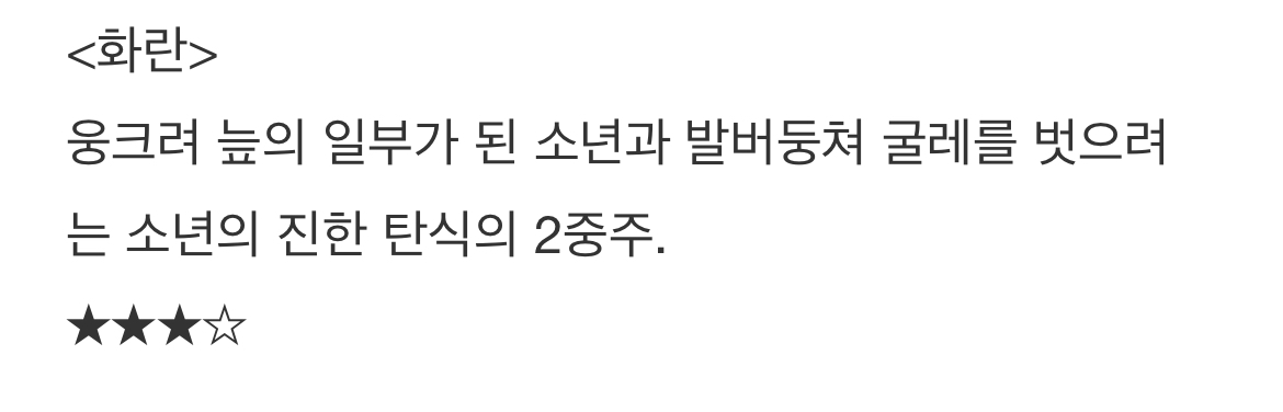작성자경기도청 작성시간 24.05.01 화란 진짜 별로였는데 나랑 다르시구만..
