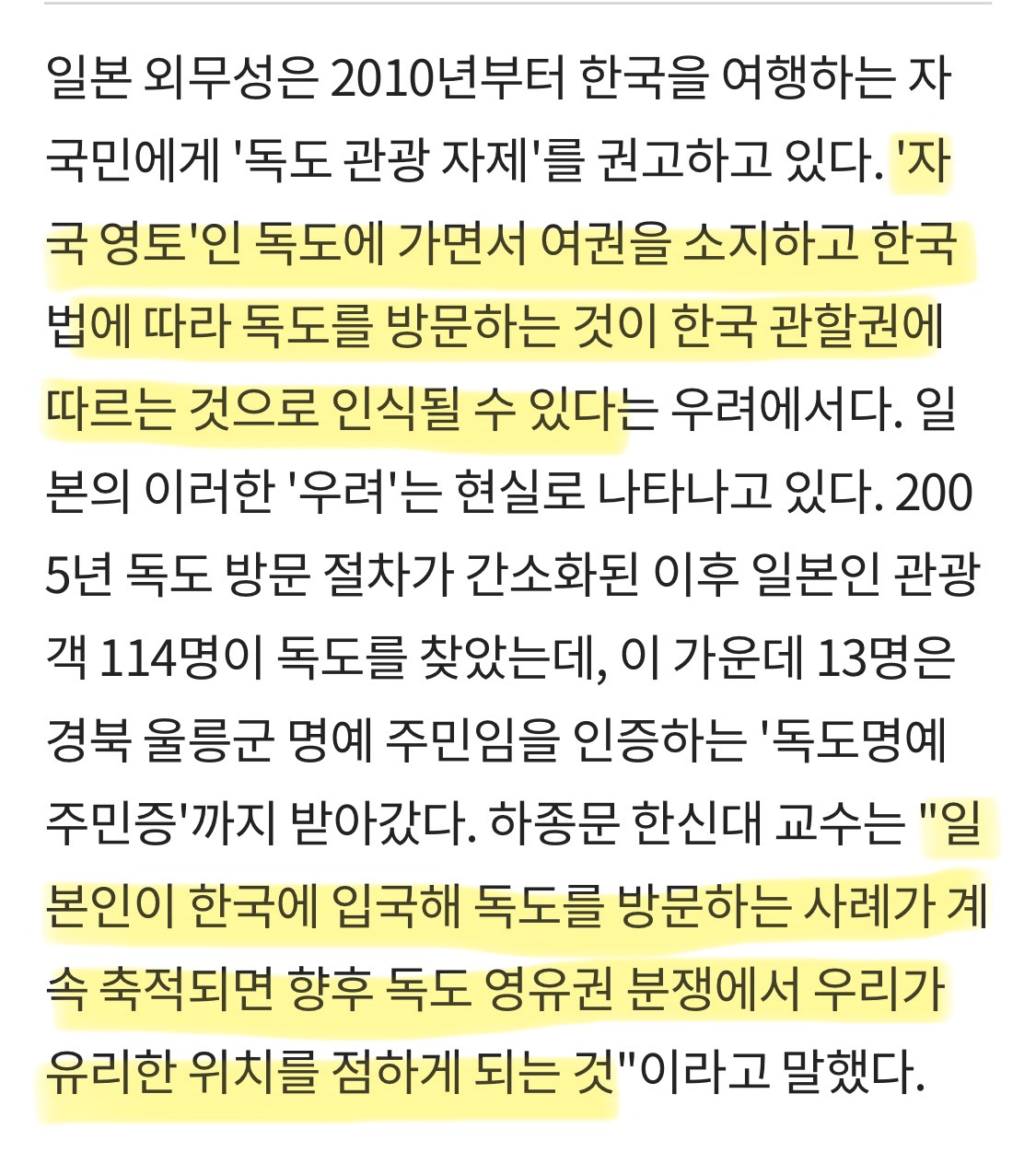일본인들이 여권 들고 독도 가는 것 = 외국인 것 인증