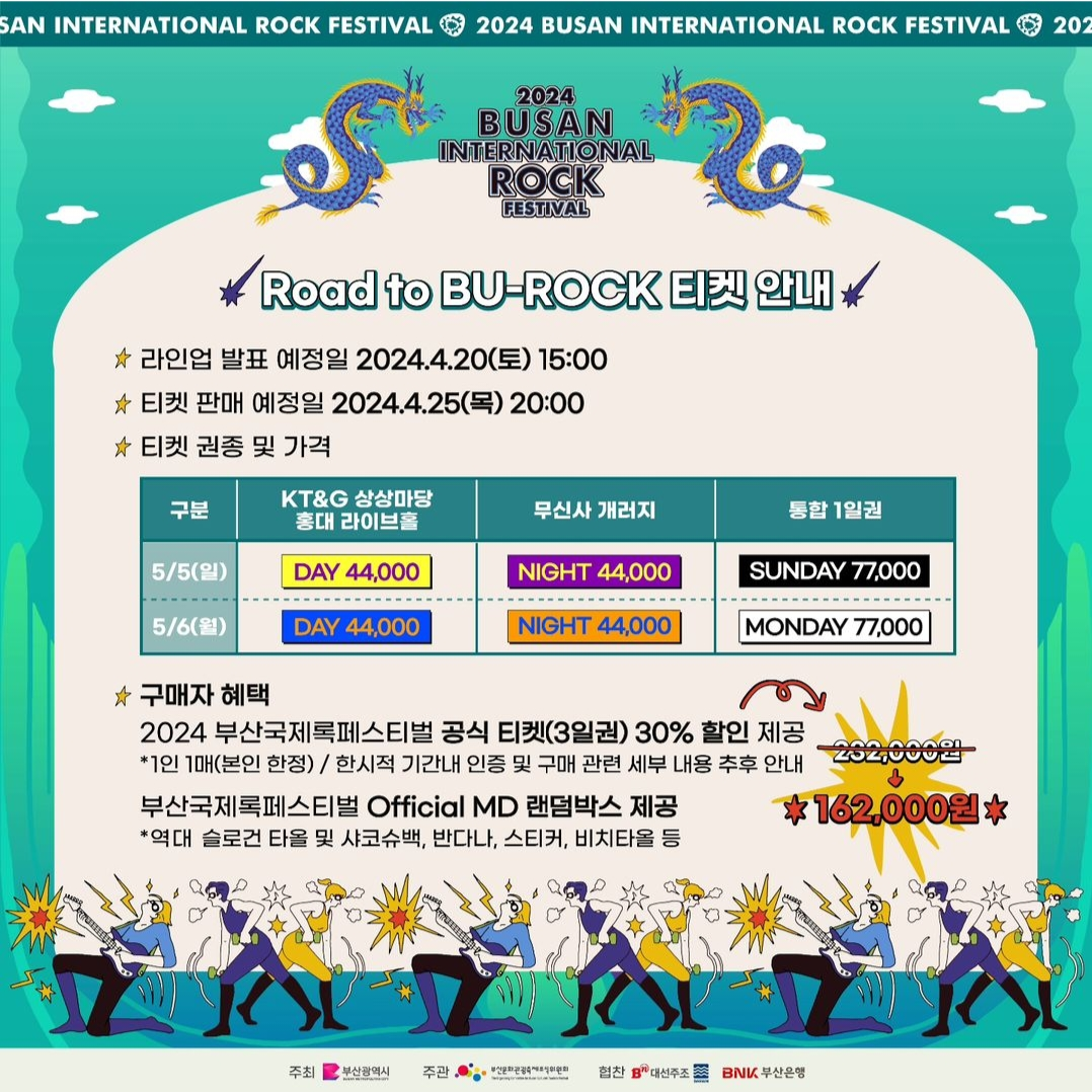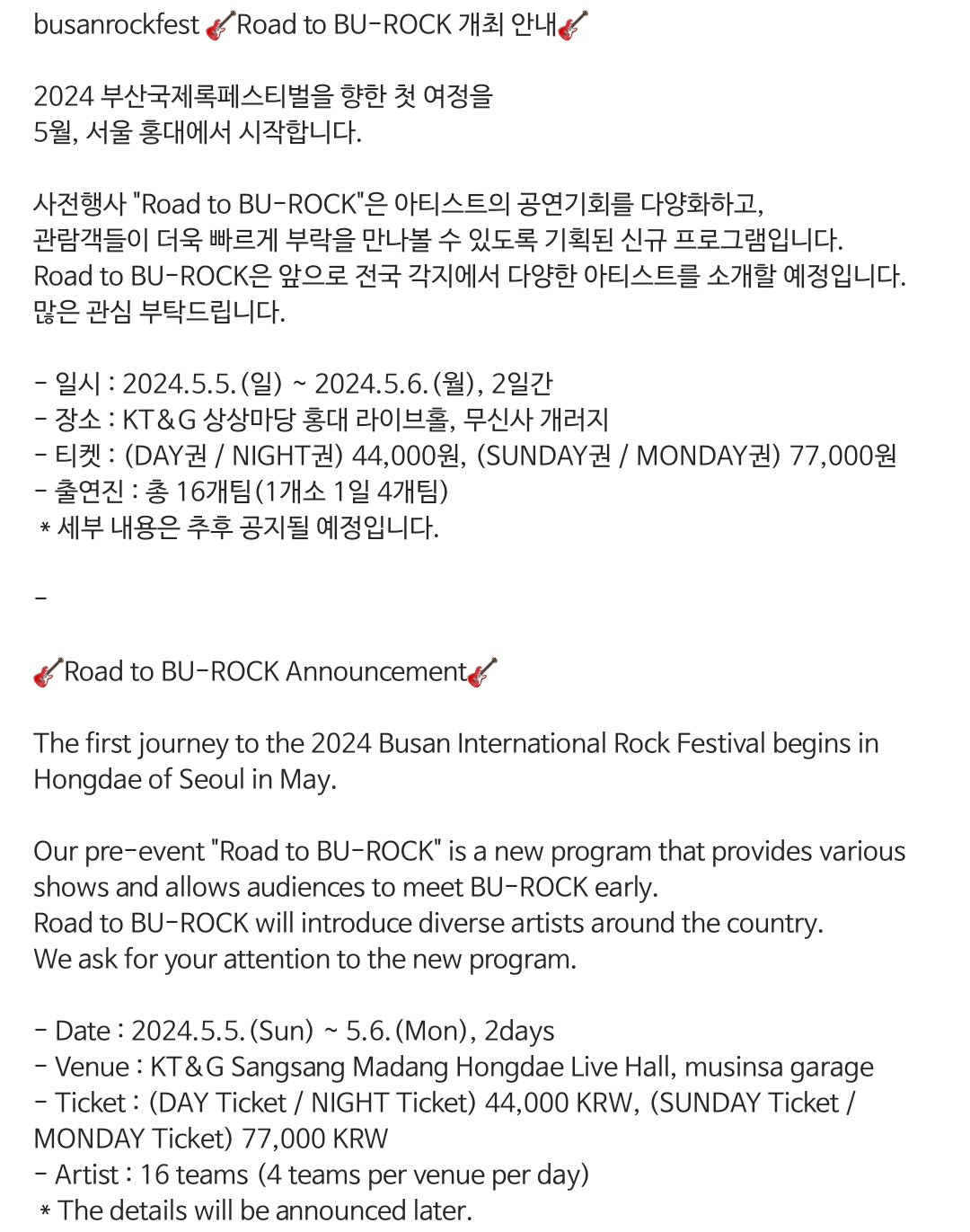 부산락페 사전행사 홍대에서 첫 진행하는데 한 공연장 기준 가수 4명 공연에 44,000원 ㄷㄷ...