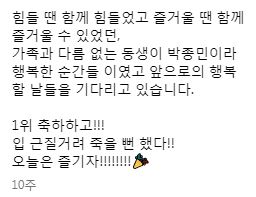 김주댕이 이렇게 길게 축하 글 올려줌