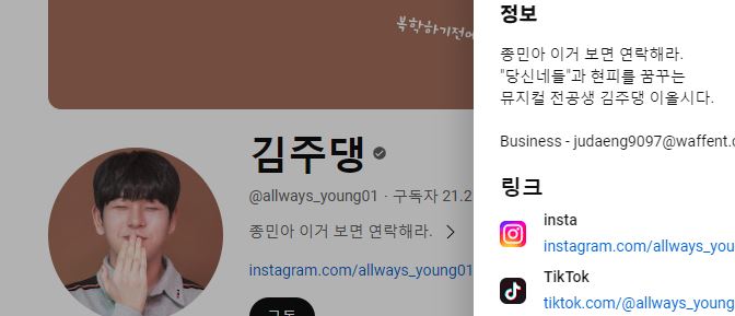 01년생 유투버 김주댕