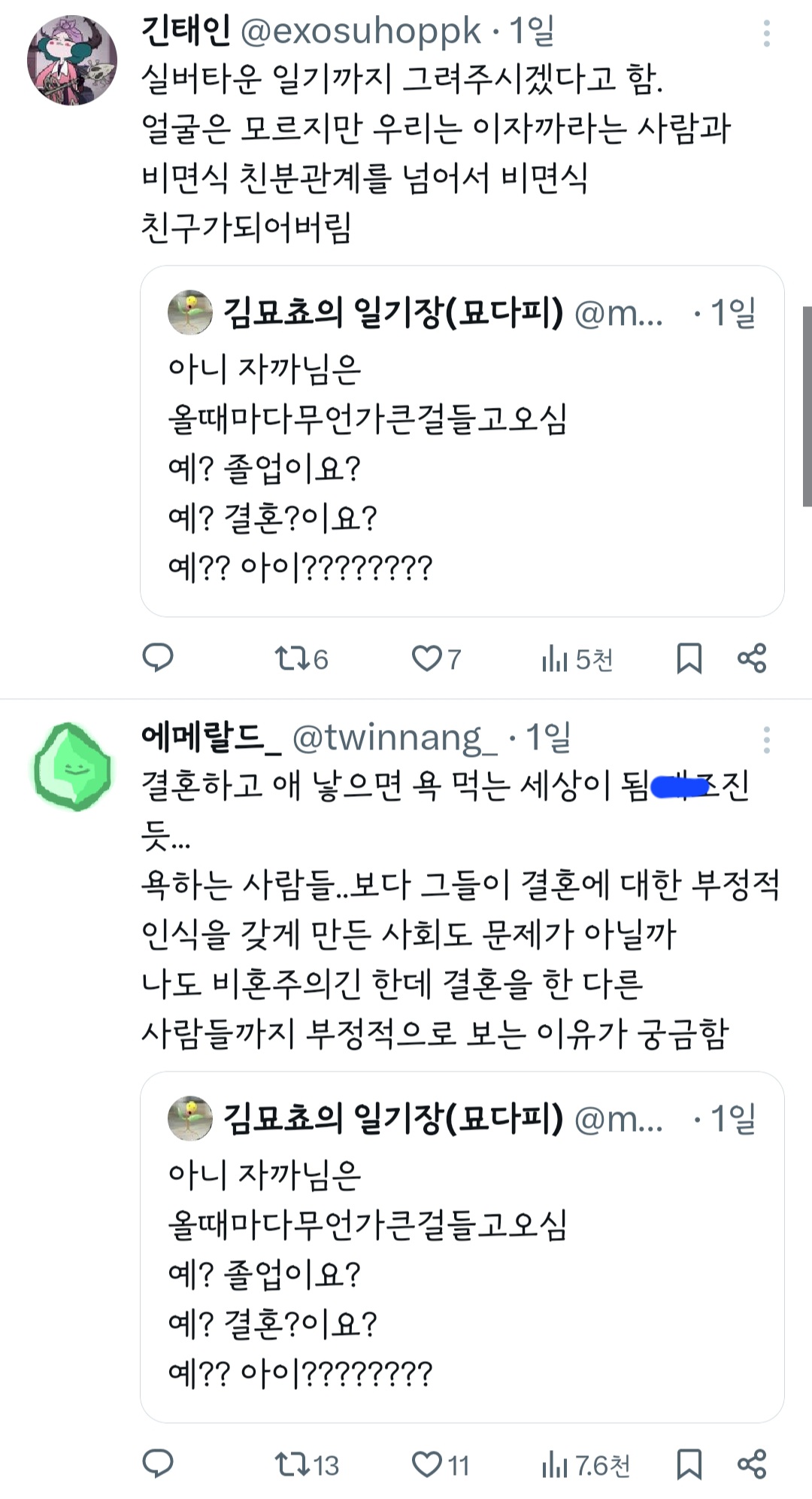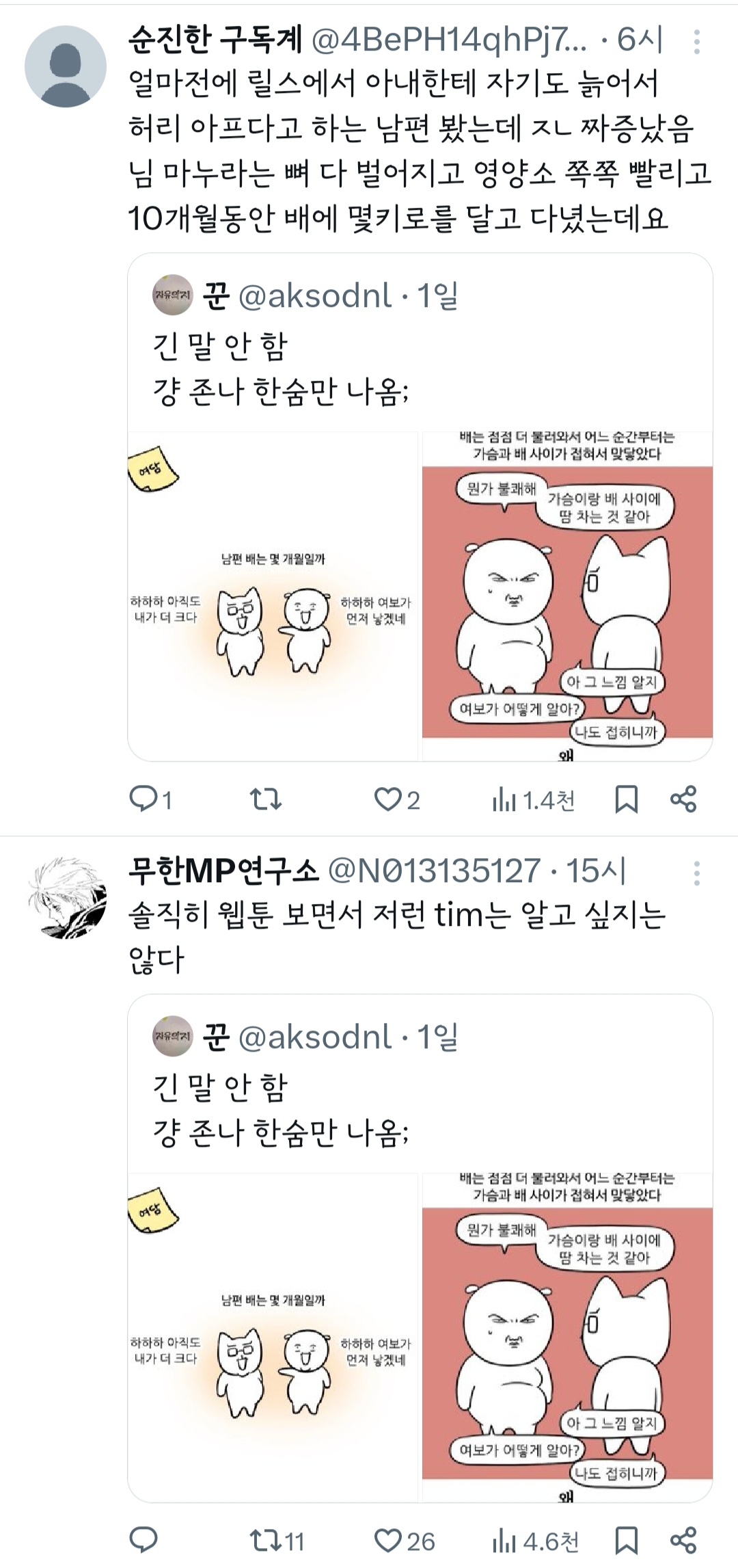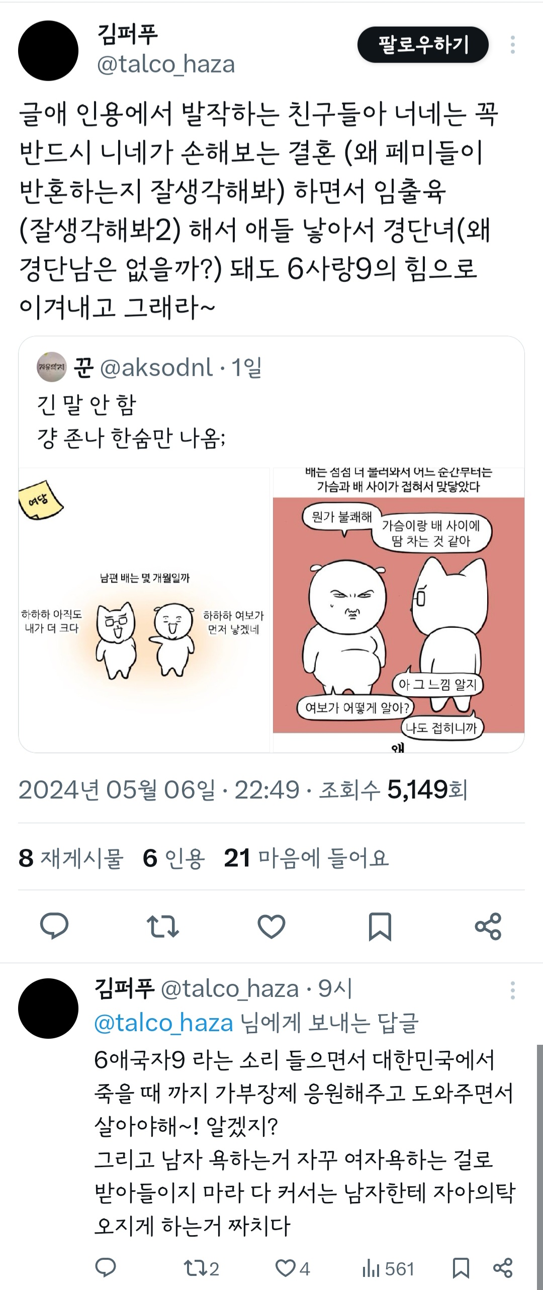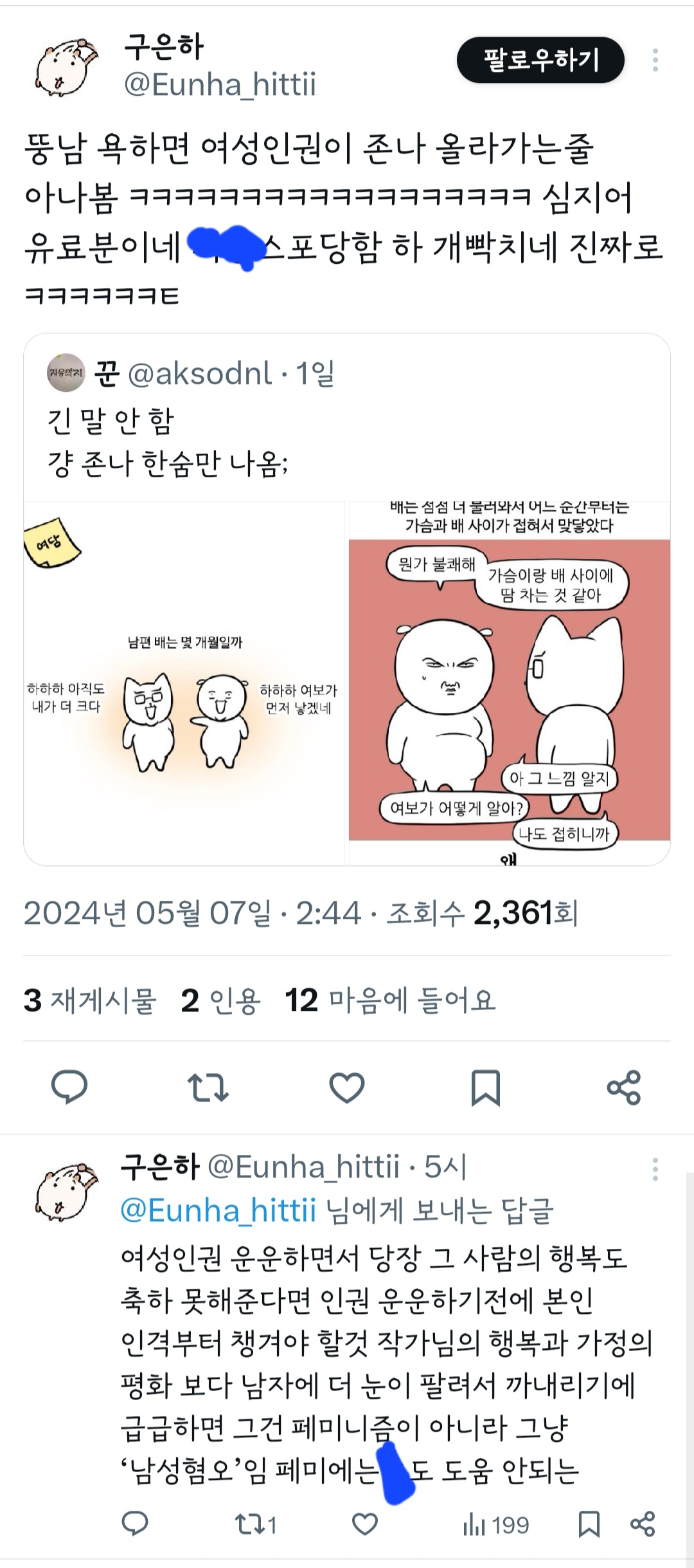 인기웹툰'여자'작가는 꼭 페미감성에 비혼이어야 되는거야? 그래야 욕을 안 먹나? 무슨 기준으로 욕하는 건지 모르겠다 ㅜ 작가님 싹다 고소하시길
