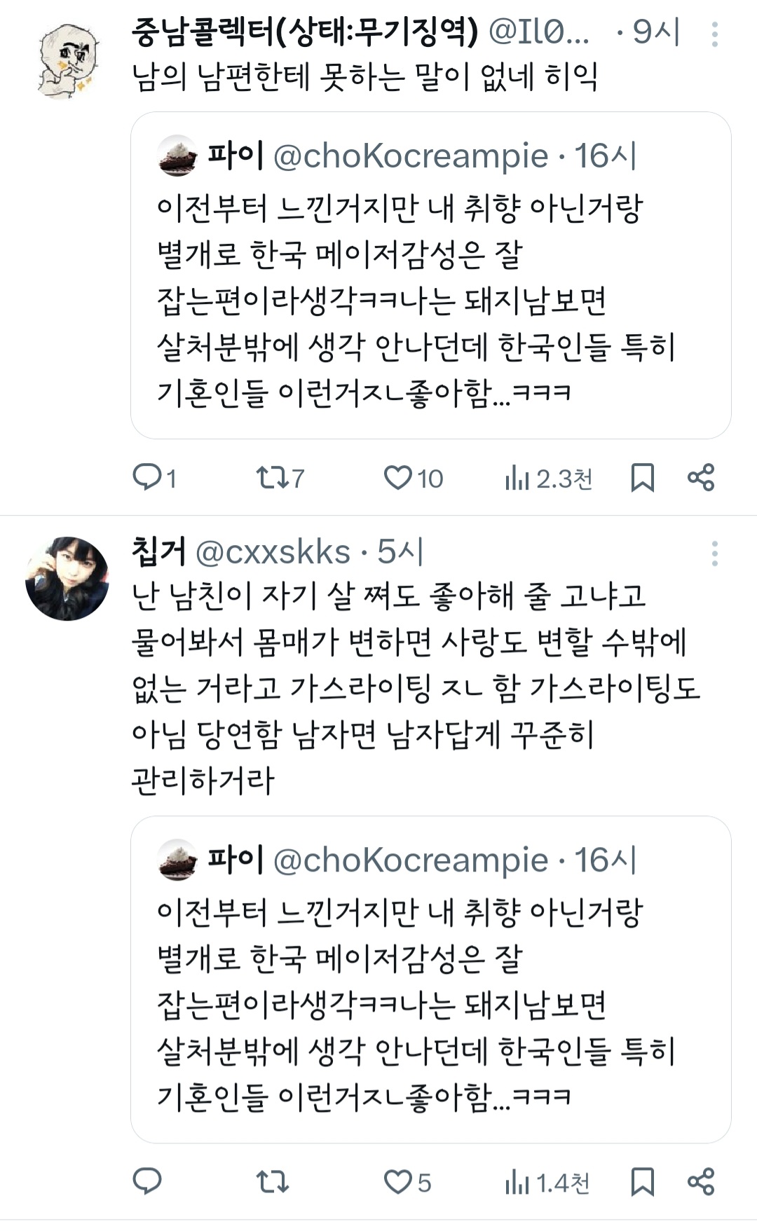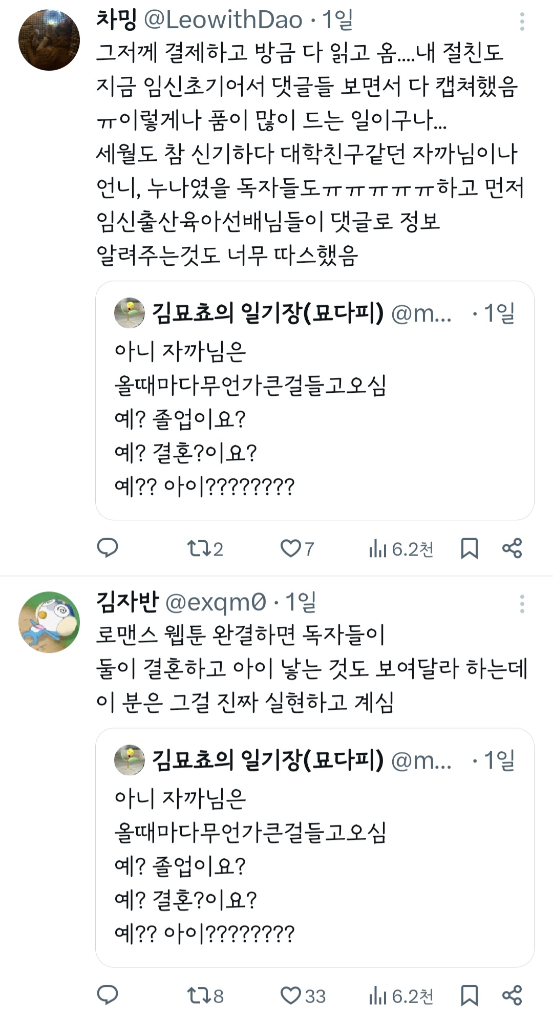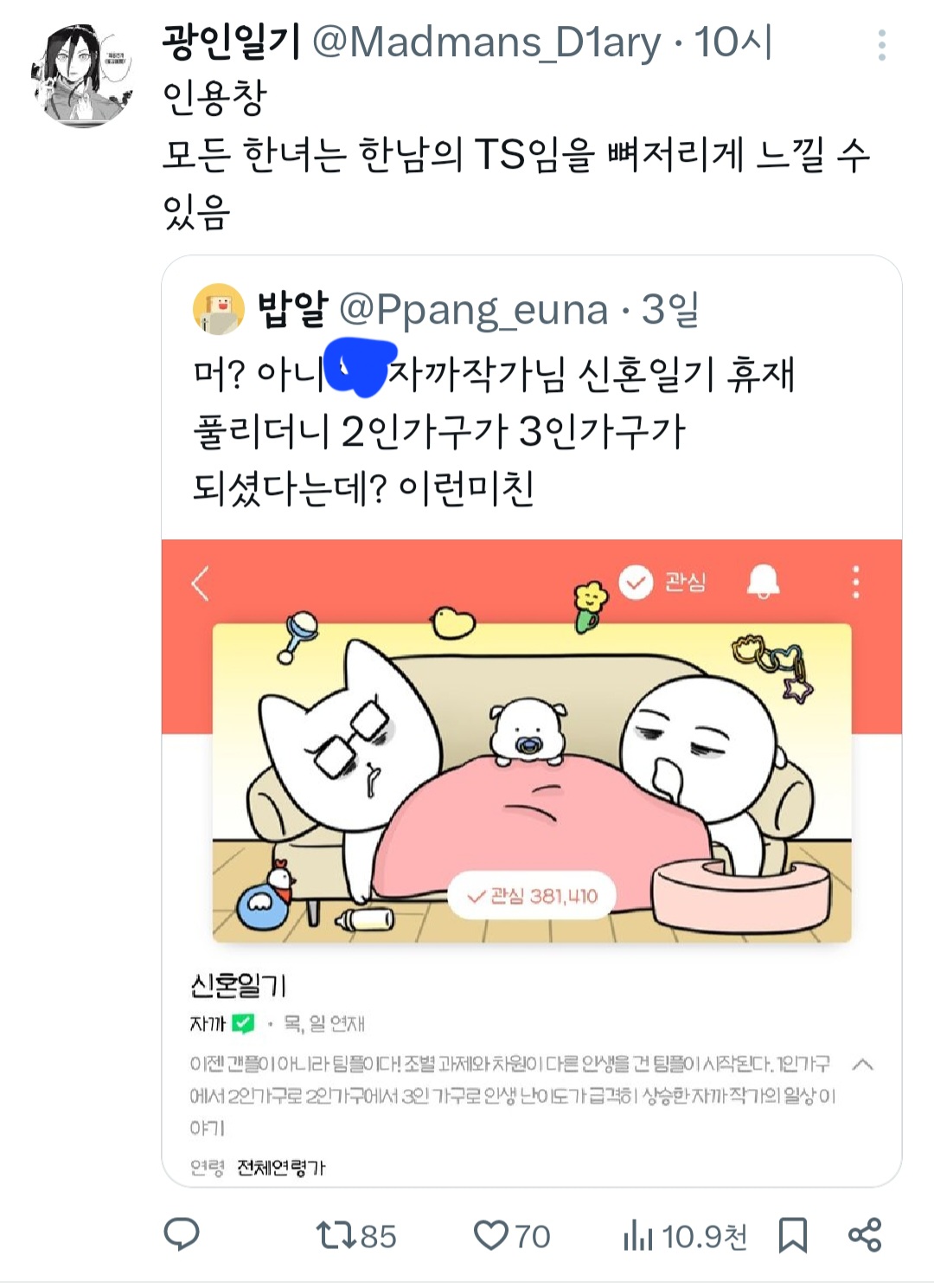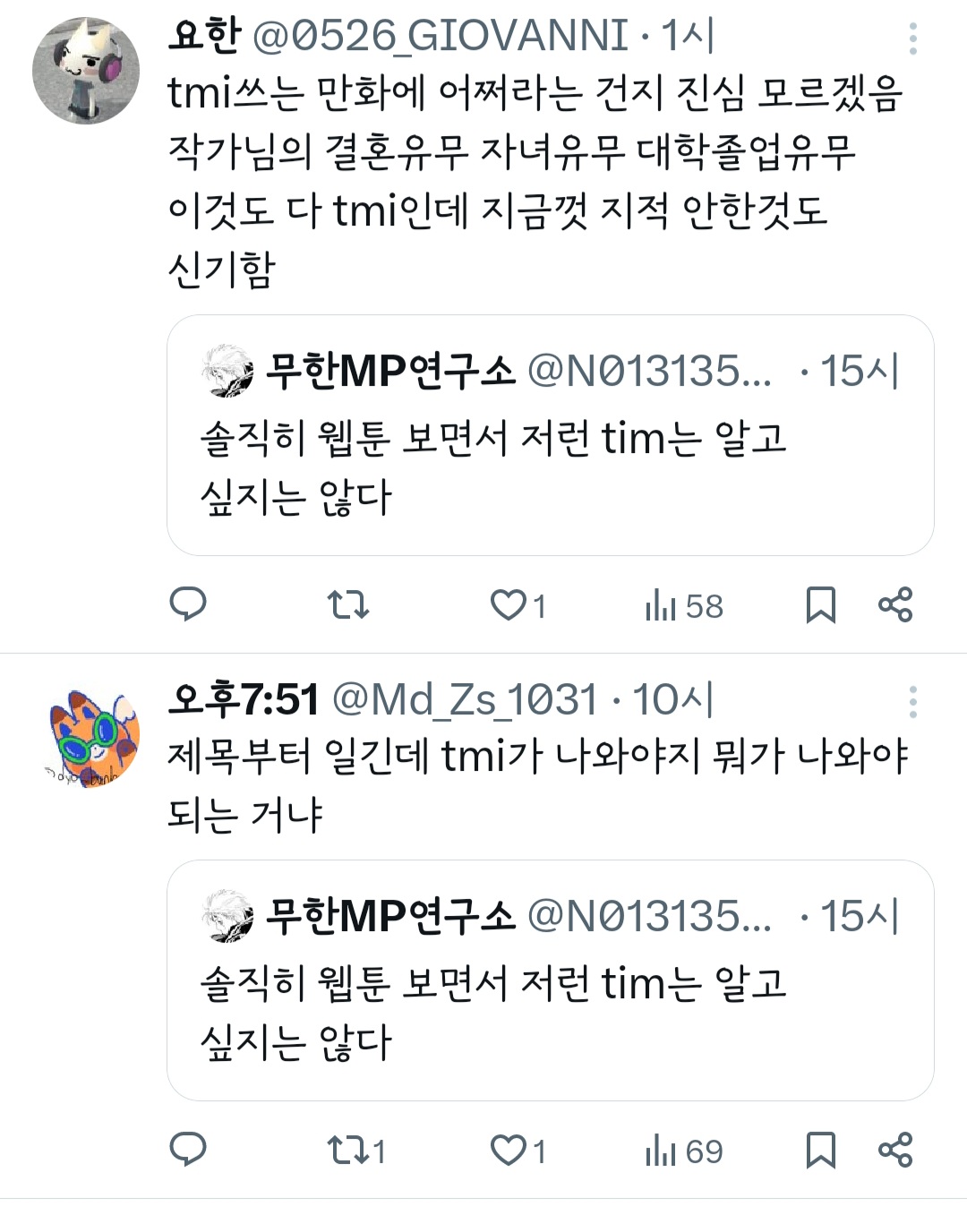 인기웹툰'여자'작가는 꼭 페미감성에 비혼이어야 되는거야? 그래야 욕을 안 먹나? 무슨 기준으로 욕하는 건지 모르겠다 ㅜ 작가님 싹다 고소하시길