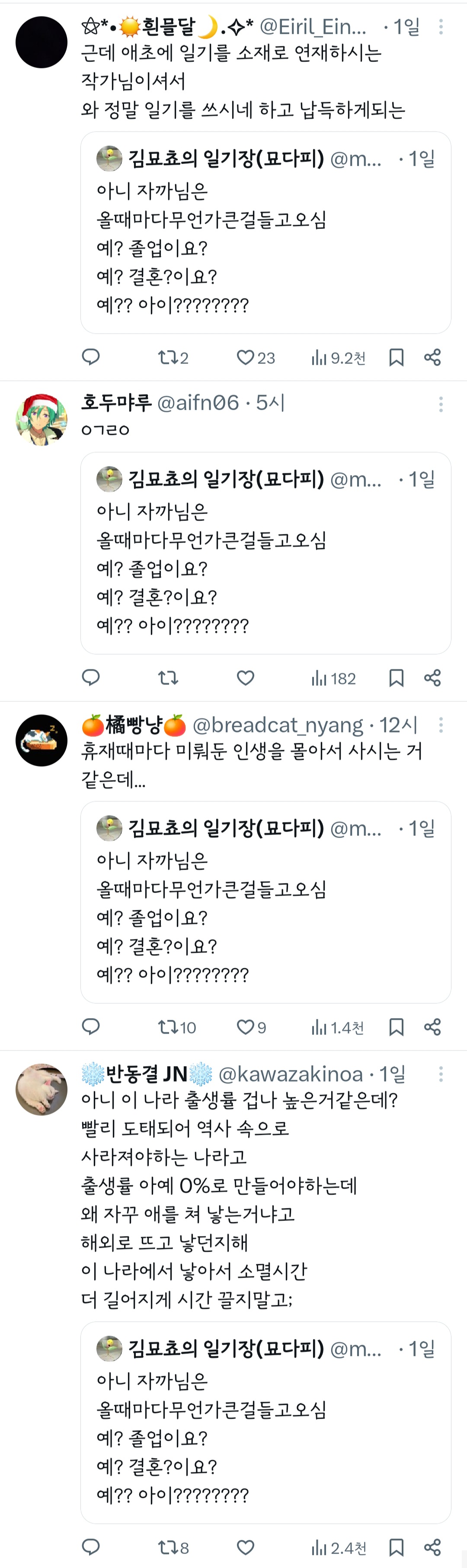 작성자이리일디 작성시간 24.05.09 안맞으면 안보면 되지 ㅋㅋ 나도 대학일기랑 재수일기였나? 그거까지만 봤는데 굳이 찾아가서 쌍욕박는게 페미는 아닙니다.. 그렇다고 이자까가 뭐 페미를 욕했나 그런것도 아닌데