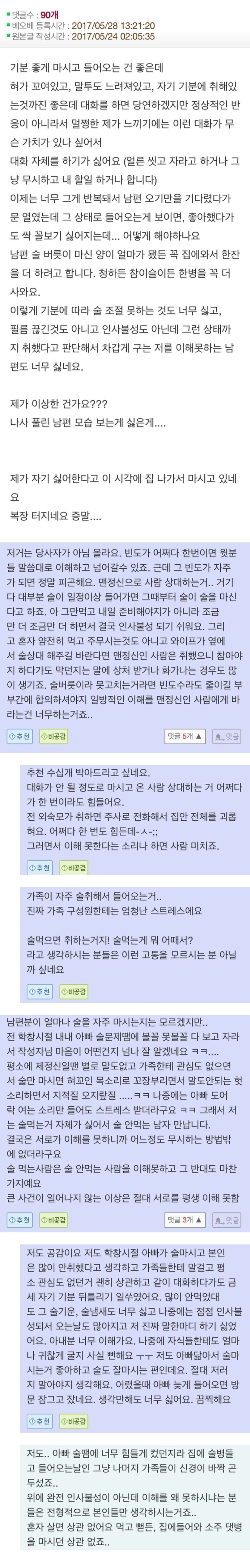 답댓글 작성자해가길어행복한인간 작성시간 24.05.07 술주정이랍시고 할말 못할말 다 하고 별 폐는 다 끼쳐놓고 매번 다음날엔 기억 안 난대..ㅋㅋㅋ 변명 참 편리하다 싶음